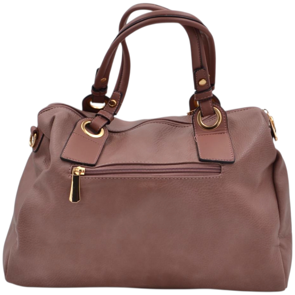 Borsa firmata shopping coconuda donna morbida a spalla con tracolla rosa e cuoio con zip dorata.