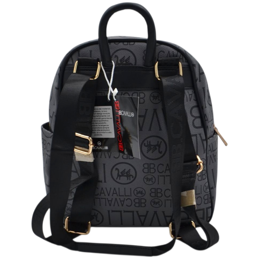 Zaino donna firmato Cavalli blu con multilogo blu cerniere dorate varie tasche