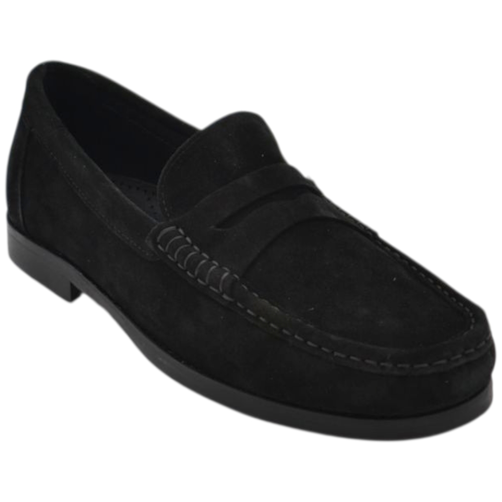 Scarpe uomo mocassini inglese college vera pelle scamosciata nero cuciture a vista made in italy fondo cuoio antiscivolo