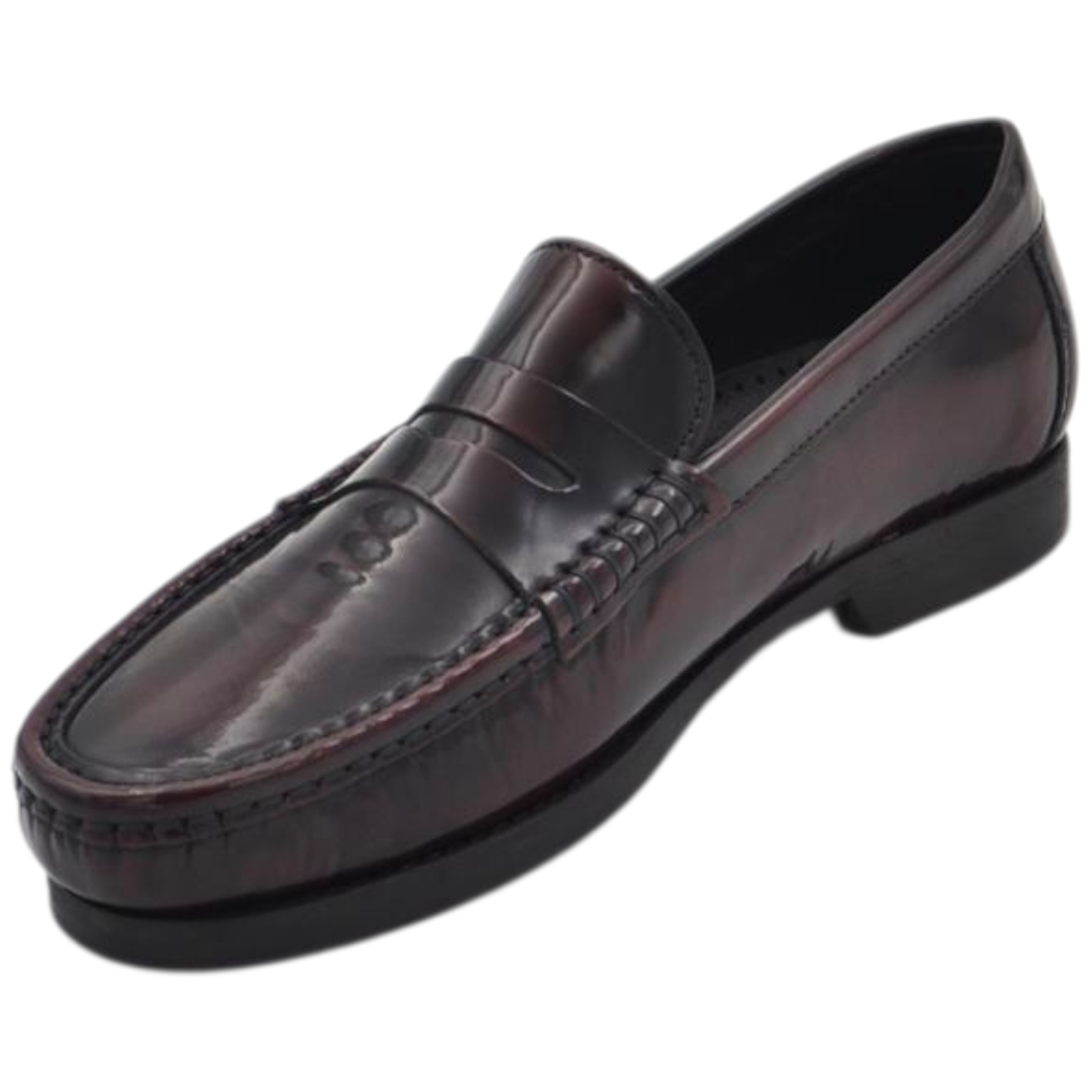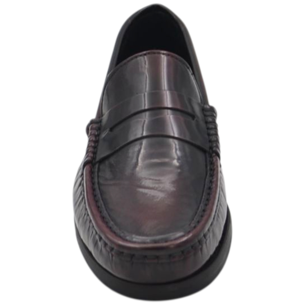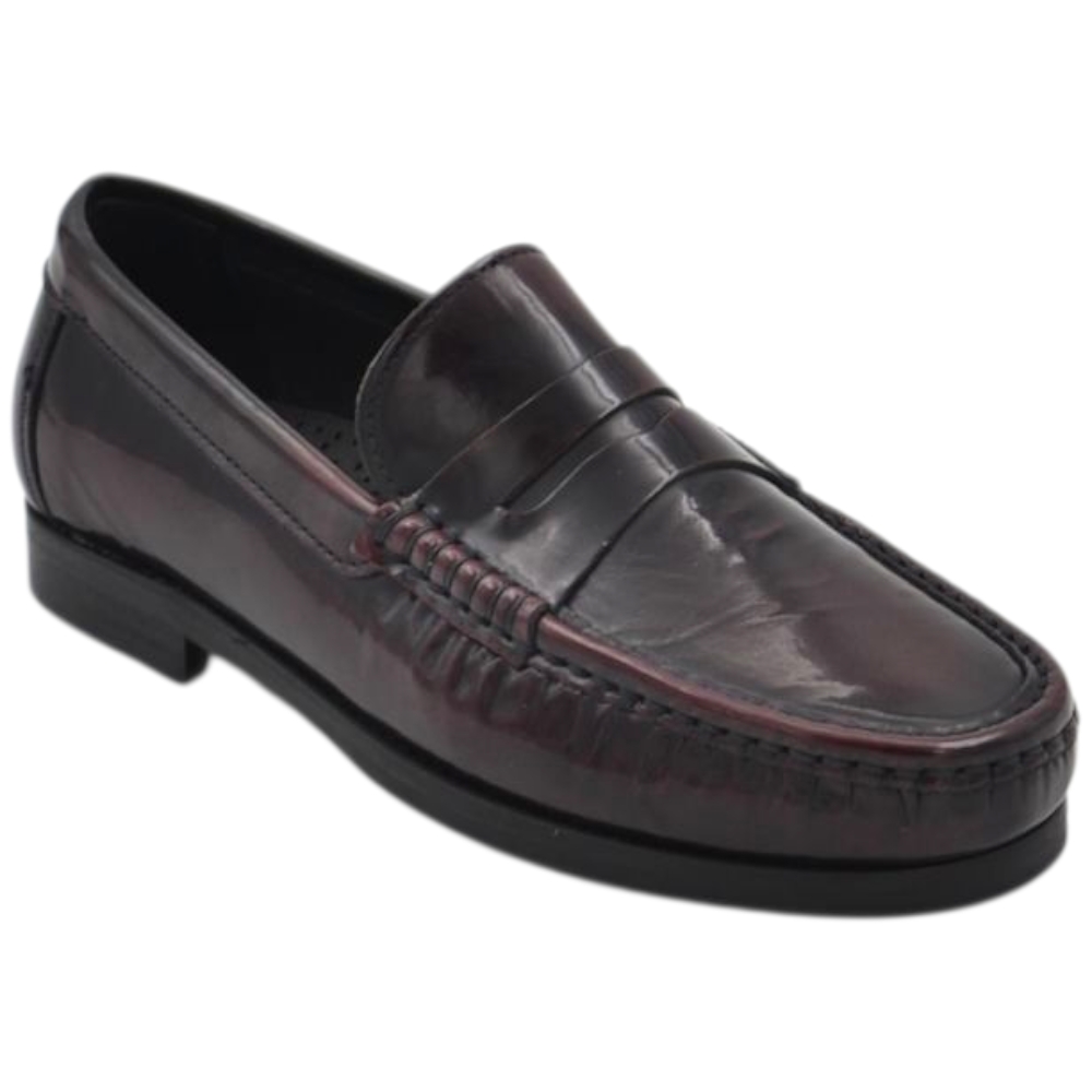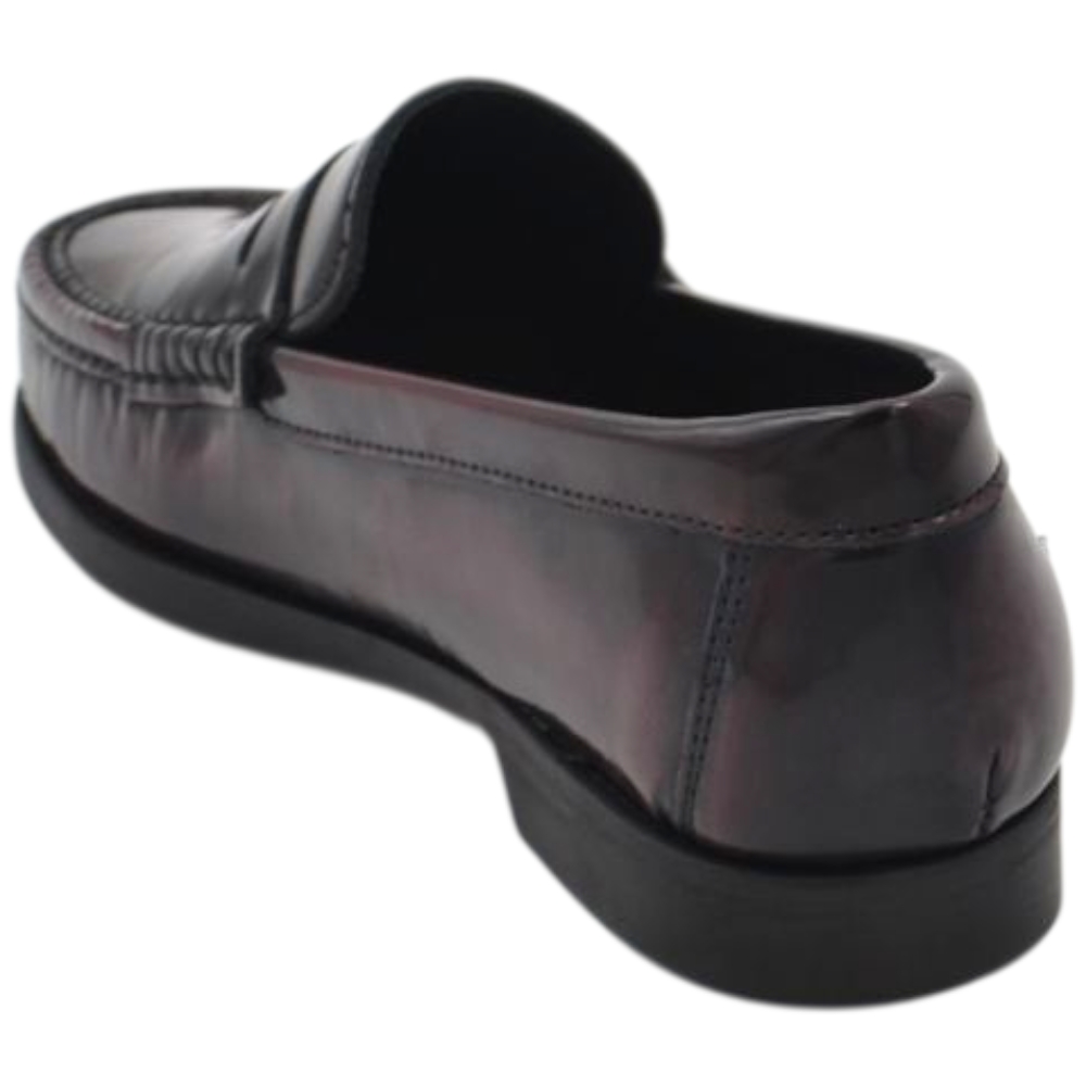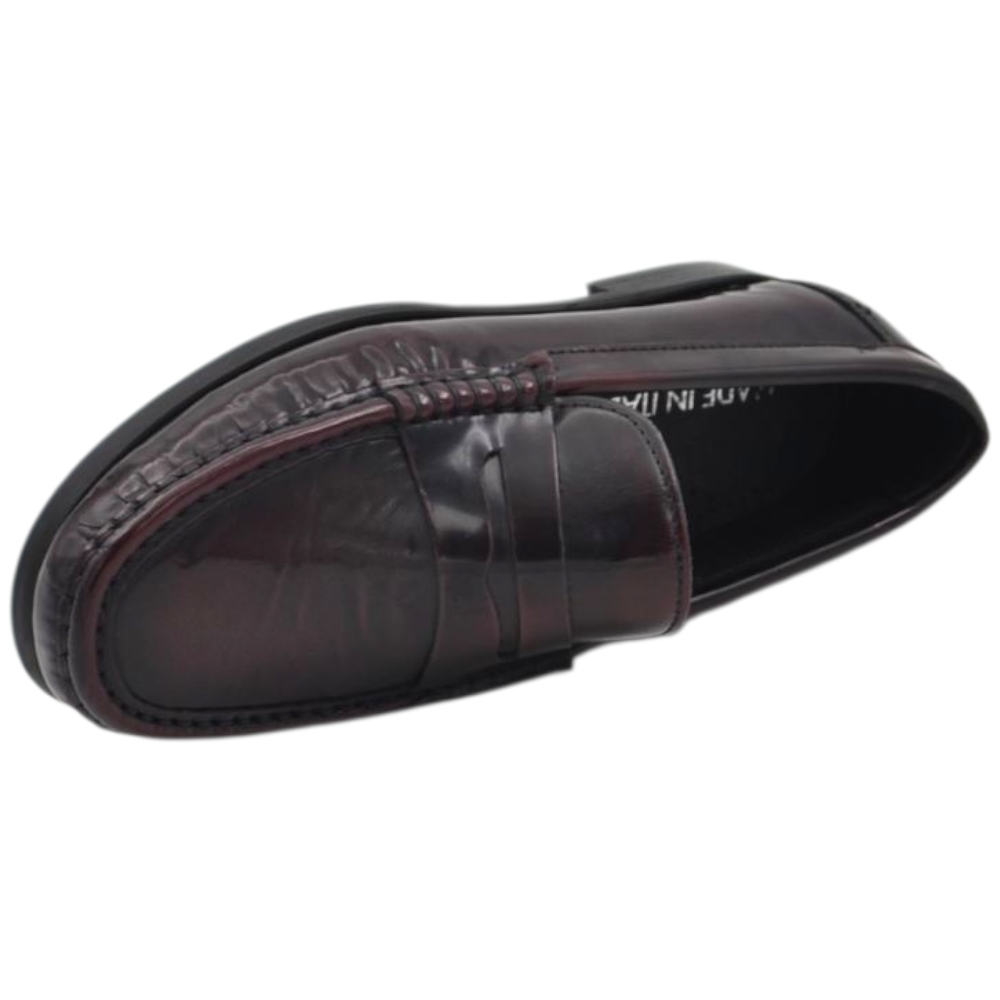 Scarpe uomo mocassini inglese college vera pelle abrasivata bordeaux cuciture rilievo made in italy fondo cuoio