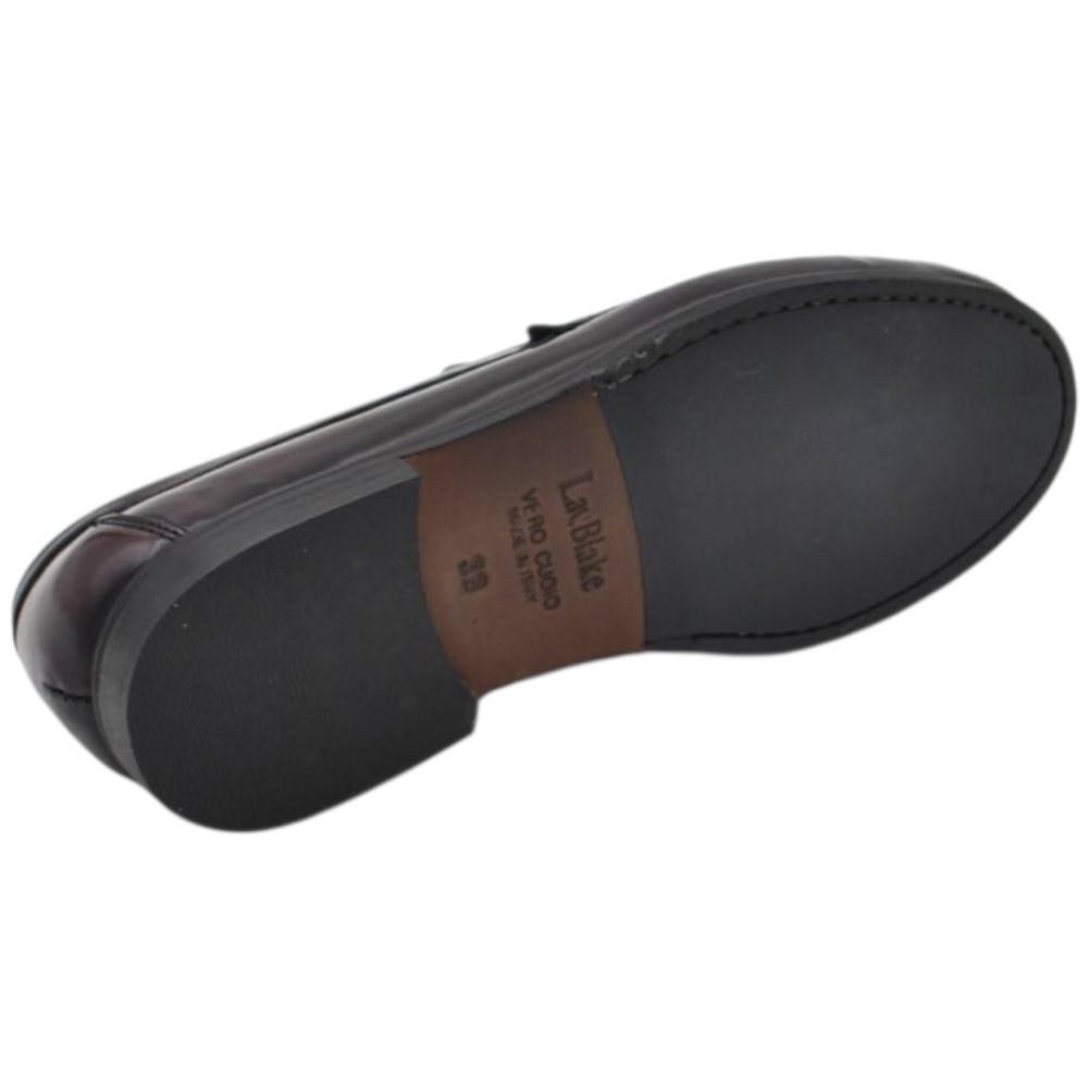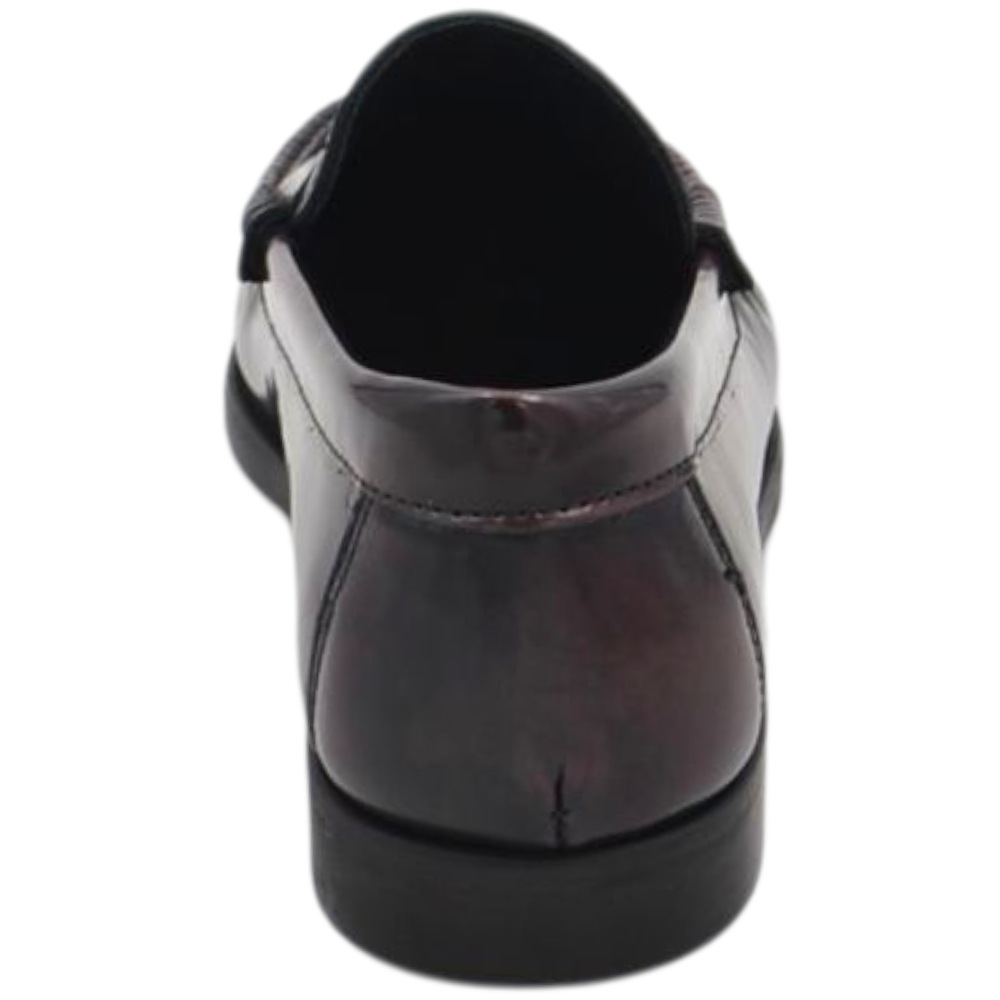 Scarpe uomo mocassino fibbia doppia bordeaux sottile derby vintage in vera pelle semilucida business fondo vero cuoio.