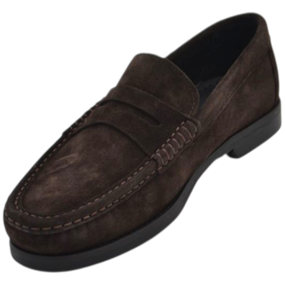 La scarpa da uomo con tomaia in pelle morbida scamosciata foderata in tessuto e pelle è un modello classico della moda maschile. Il College tradizionale in pelle scamosciata con mascherina suola in vero cuoio, tacco basso antiscivolo e isolante ha un design squisitamente elegante perfetto per il business e per l'uomo che ama i completi classici. Un mocassino fine di qualità per una calzata più confortevole adatta all'uomo che ama vestire con classe lo stile italiano.