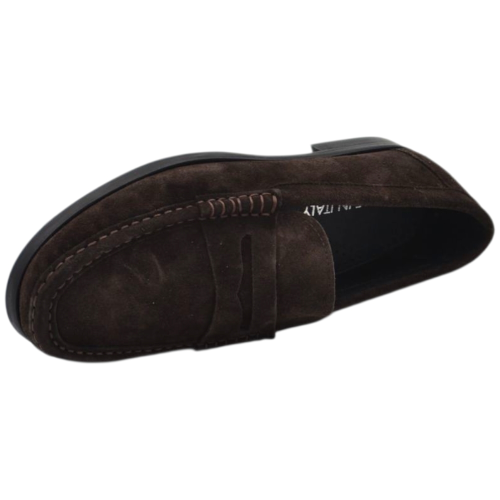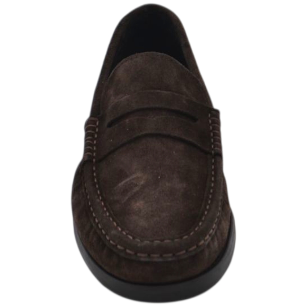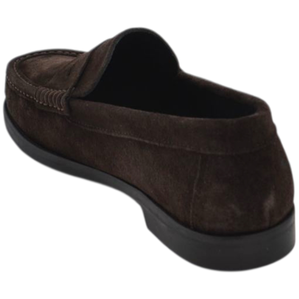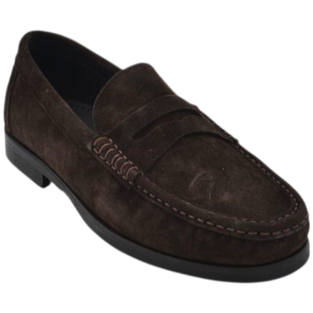 Scarpe uomo mocassini college vera pelle scamosciata marrone cuciture a vista made in italy fondo cuoio antiscivolo