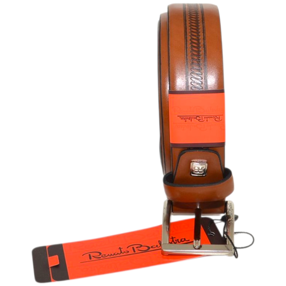 Le cinture Renato Balestra sono pensate per gli uomini dinamici che scelgono accessori pratici ed eleganti. Realizzata in pelle cuoio resistente è una cintura giovane ma con design classico: la fibbia ad ardiglione silver con logo inciso e il taglio minimal della cintura, liscia e con impunture rendono il modello sobrio e adatto ad abbigliamento classico.