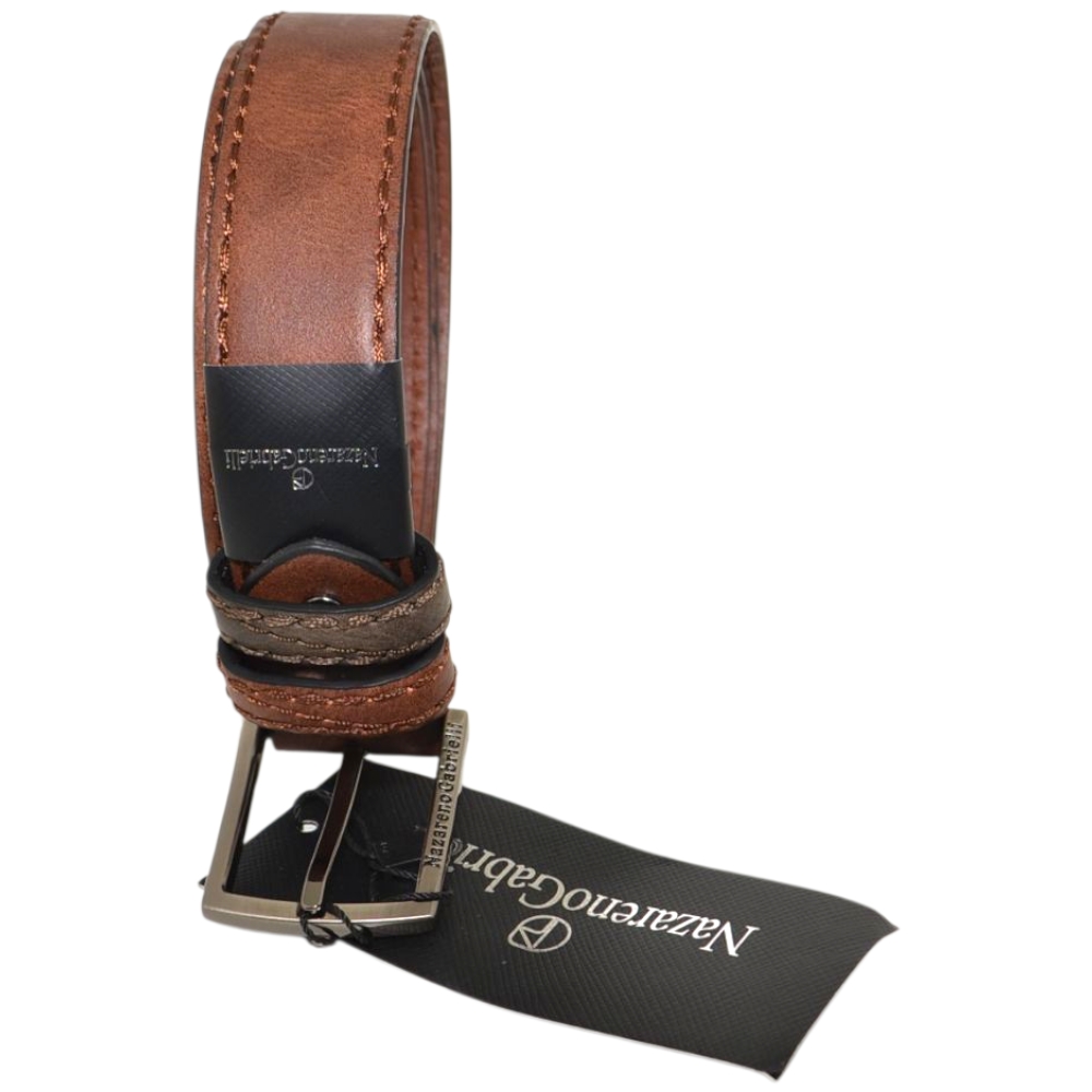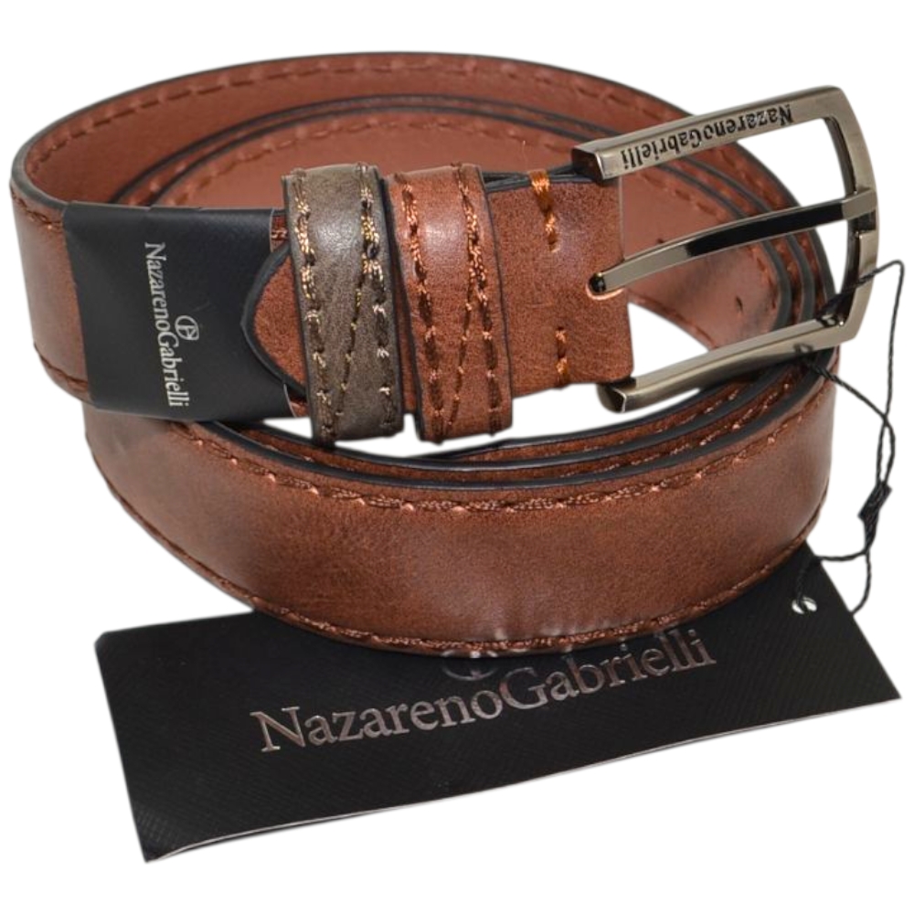 Cintura uomo vera pelle marrone refinita a mano Nazareno Gabrielli con fibbia in metallo regolabile con scatola in legno