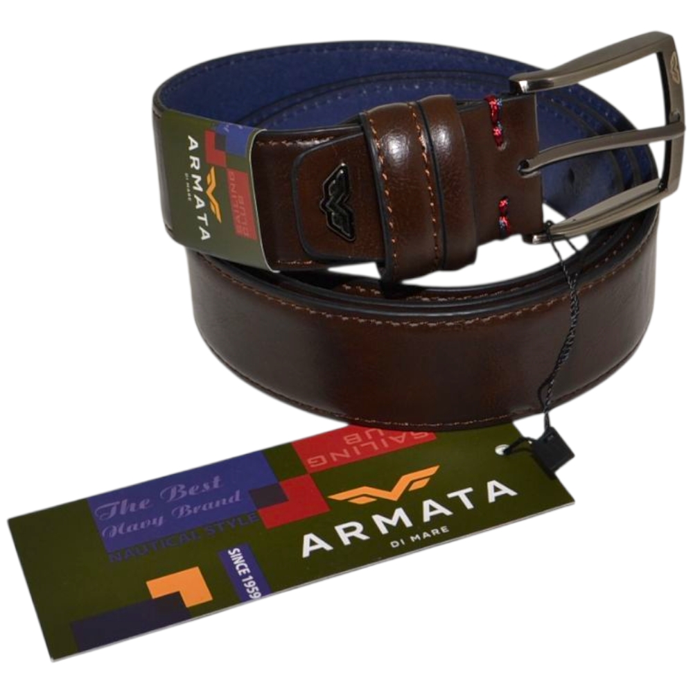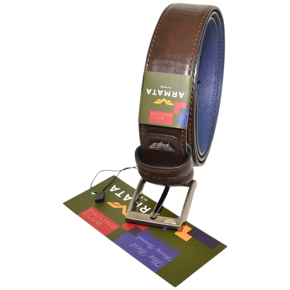 Le cinture Armate di Mare sono pensate per gli uomini dinamici che scelgono accessori pratici ed eleganti. Realizzata in pelle marrone resistente è una cintura giovane ma con design classico: la fibbia ad ardiglione silver con logo inciso e il taglio minimal della cintura, liscia e con impunture rendono il modello sobrio e adatto ad abbigliamento classico.