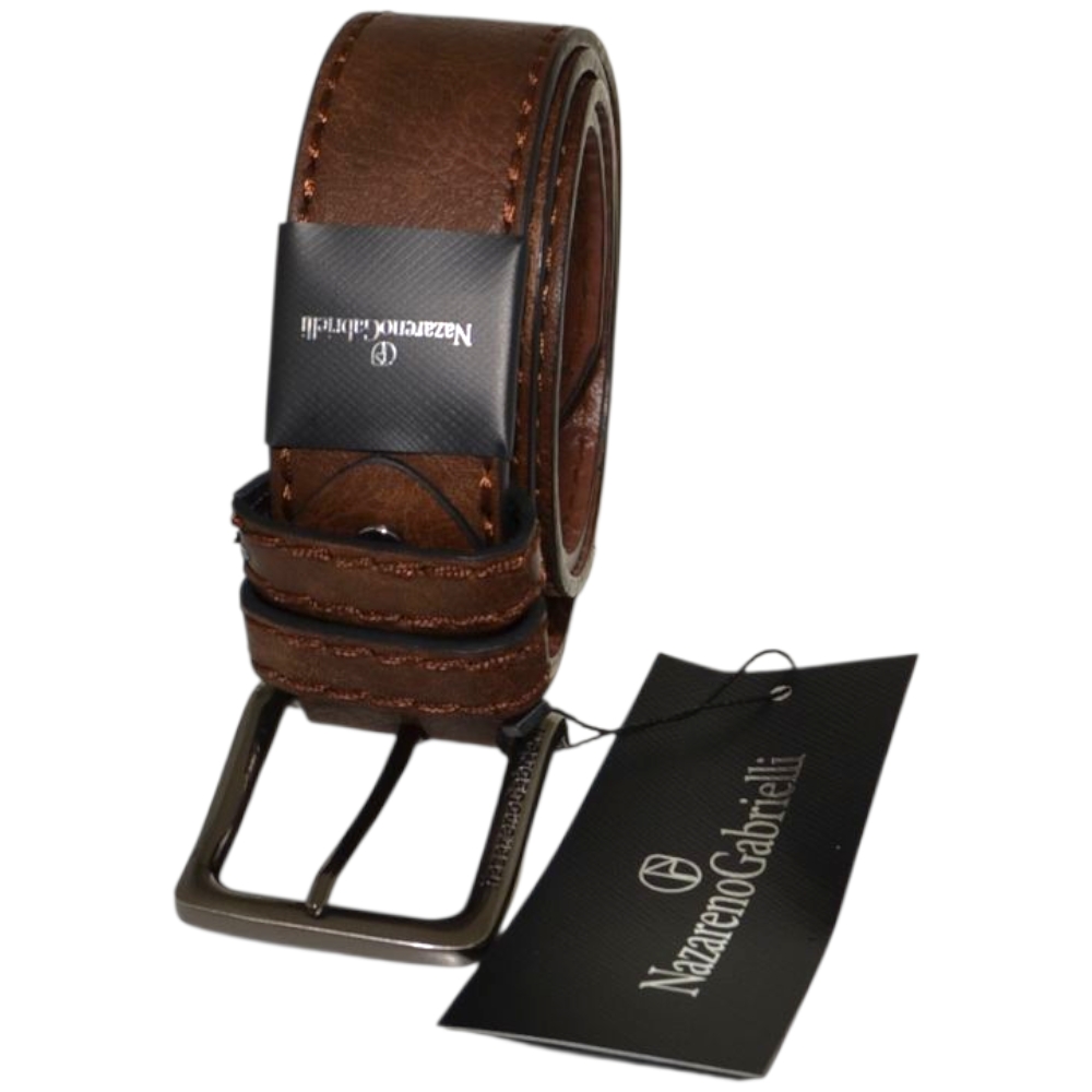 Cintura uomo vera pelle marrone Renato Balestra con doppia cucitura fibbia in metallo quadrata regolabile scatola legno.
