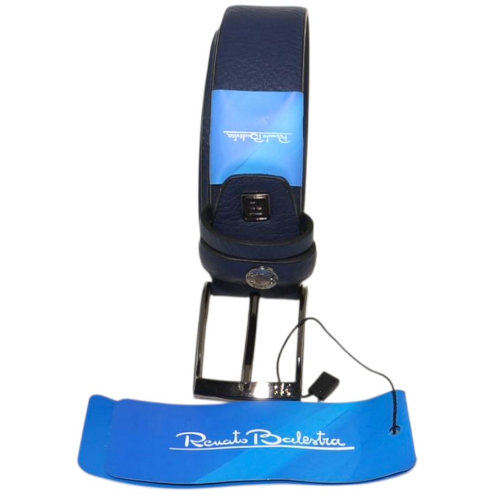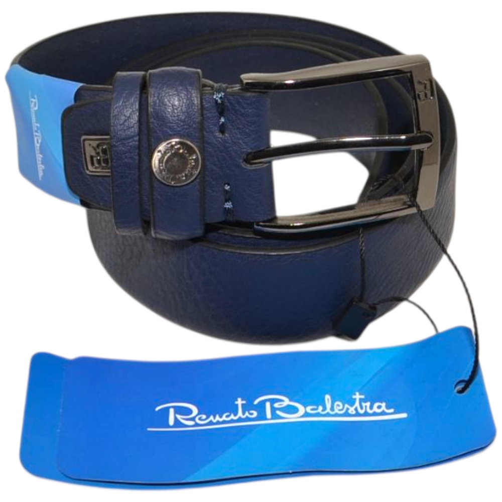 Le cinture Renato Balestra sono pensate per gli uomini dinamici che scelgono accessori pratici ed eleganti. Realizzata in pelle blu resistente è una cintura giovane ma con design classico: la fibbia ad ardiglione silver con logo inciso e il taglio minimal della cintura, liscia e con impunture rendono il modello sobrio e adatto ad abbigliamento classico.