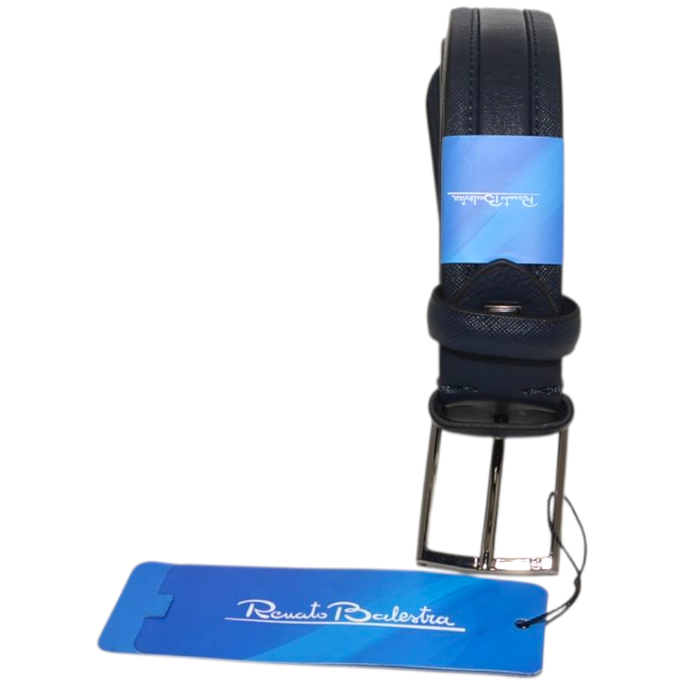 Le cinture Renato Balestra sono pensate per gli uomini dinamici che scelgono accessori pratici ed eleganti. Realizzata in pelle blu resistente è una cintura giovane ma con design classico: la fibbia ad ardiglione silver con logo inciso e il taglio minimal della cintura, liscia e con impunture rendono il modello sobrio e adatto ad abbigliamento classico.