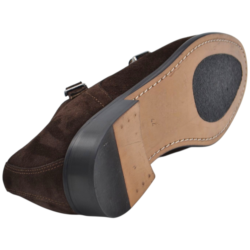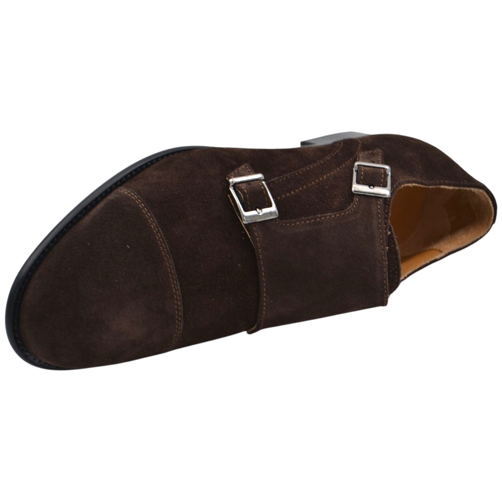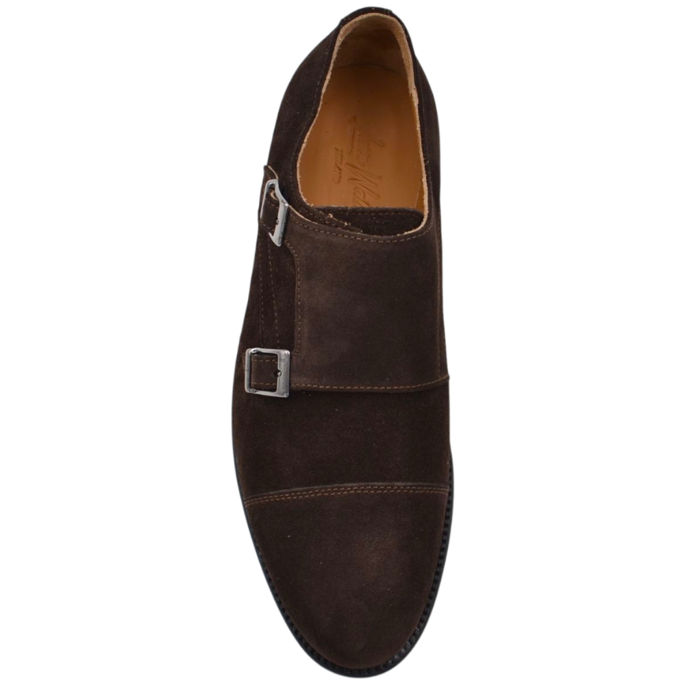 Scarpe uomo doppia fibbia eleganti vera pelle scamosciata marrone suola vero cuoio con antiscivolo handmade in italy