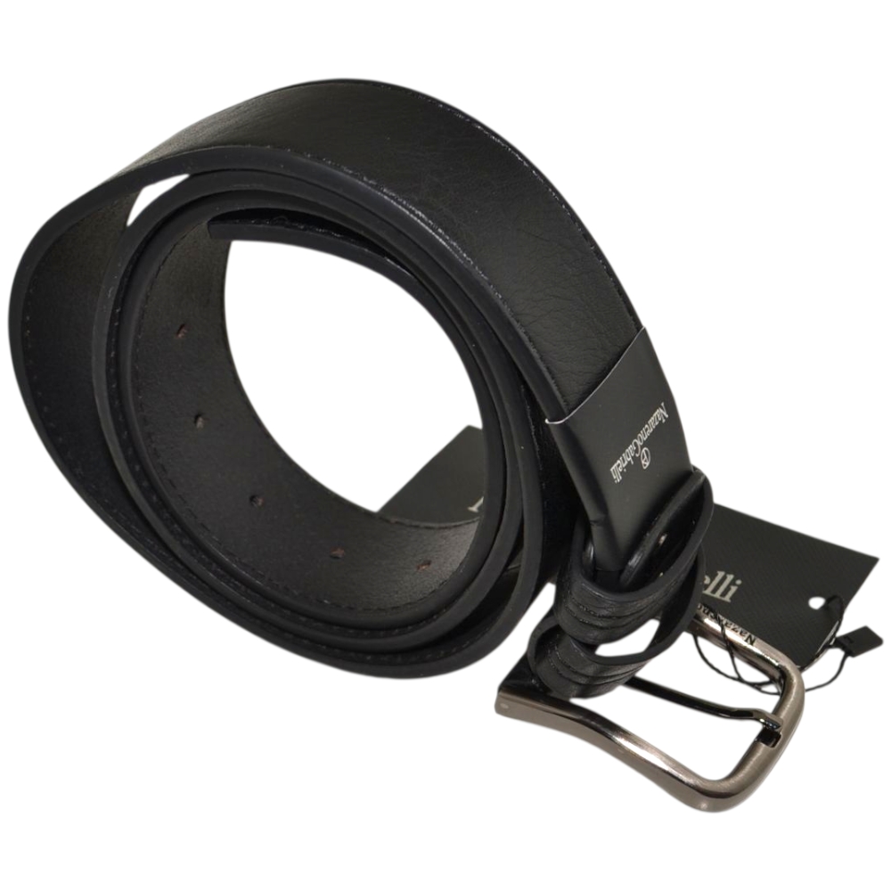 Cintura Uomo Cintura Regolabile Pellame Opaco Abrasivato Nero Tinta Unita con Fibbia in Metallo Linea Classica.