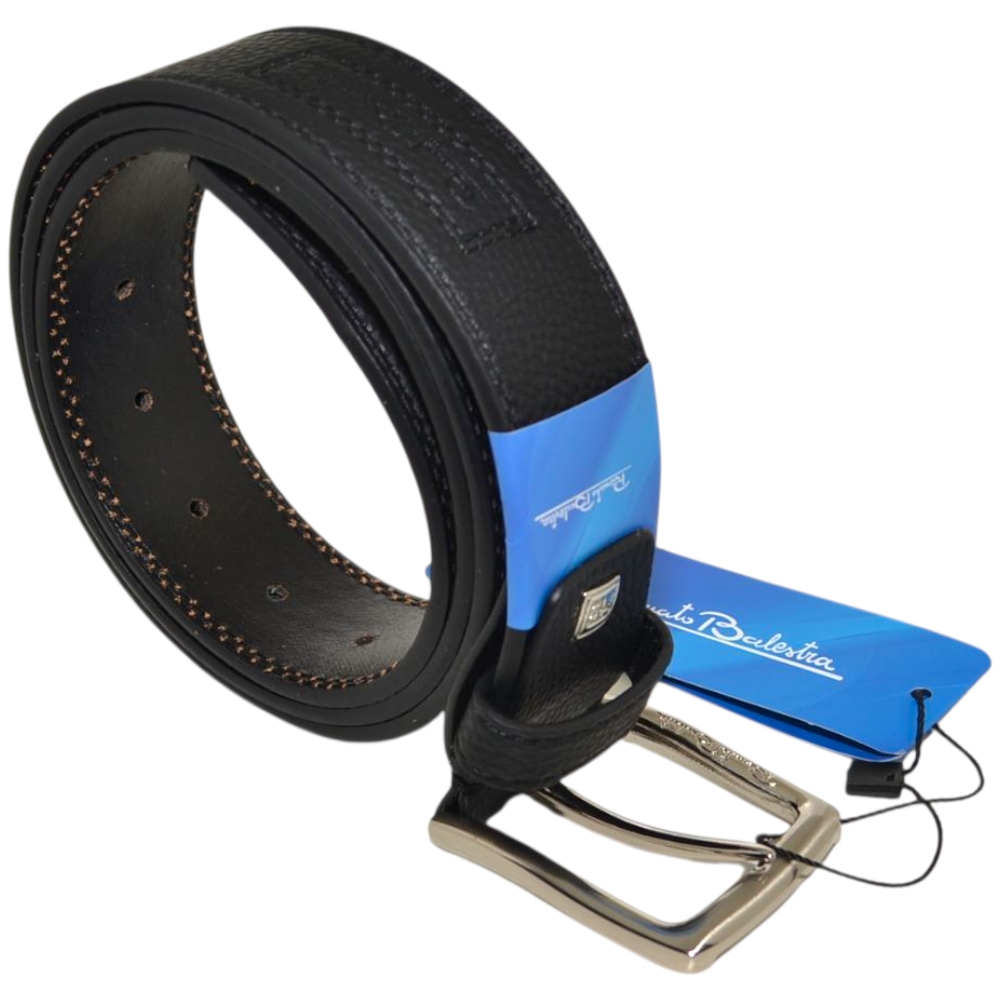 Cintura uomo vera pelle nera Renato Balestra con doppia cucitura fibbia in metallo quadrata regolabile scatola in legno