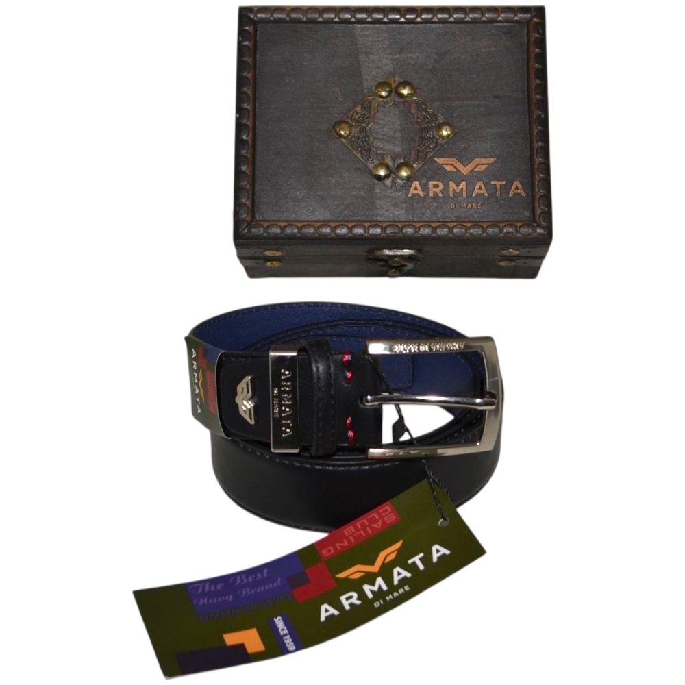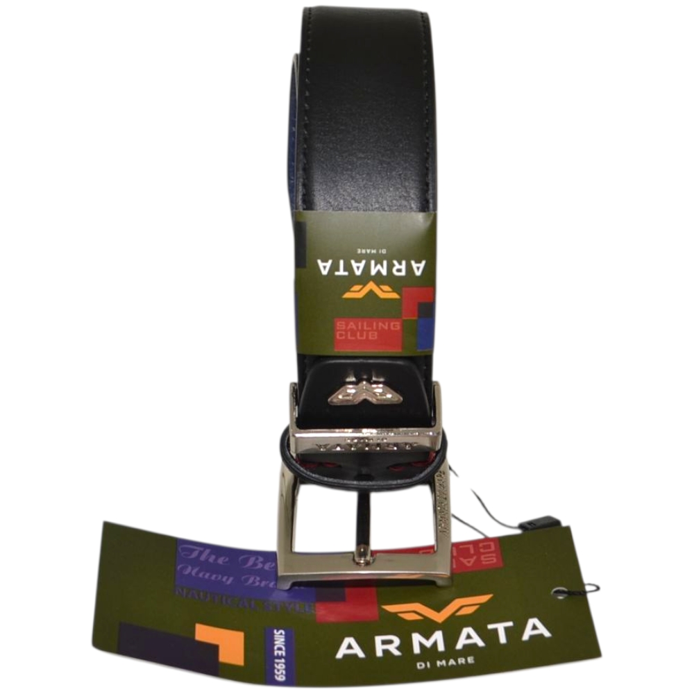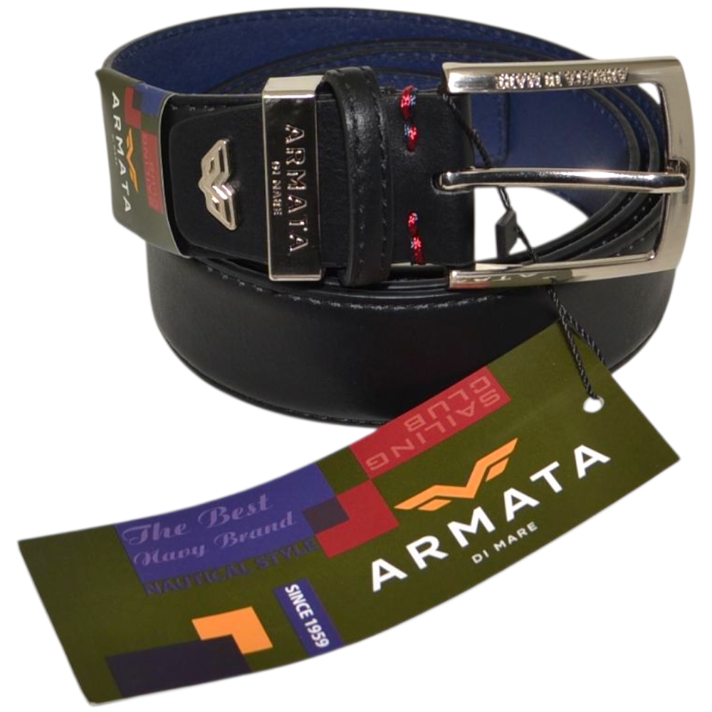 Le cinture Armate di Mare sono pensate per gli uomini dinamici che scelgono accessori pratici ed eleganti. Realizzata in pelle nero resistente è una cintura giovane ma con design classico: la fibbia ad ardiglione silver con logo inciso e il taglio minimal della cintura, liscia e con impunture rendono il modello sobrio e adatto ad abbigliamento classico.