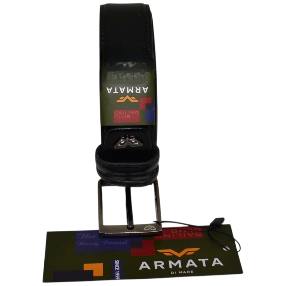 Le cinture Armate di Mare sono pensate per gli uomini dinamici che scelgono accessori pratici ed eleganti. Realizzata in pelle nero resistente è una cintura giovane ma con design classico: la fibbia ad ardiglione silver con logo inciso e il taglio minimal della cintura, liscia e con impunture rendono il modello sobrio e adatto ad abbigliamento classico.