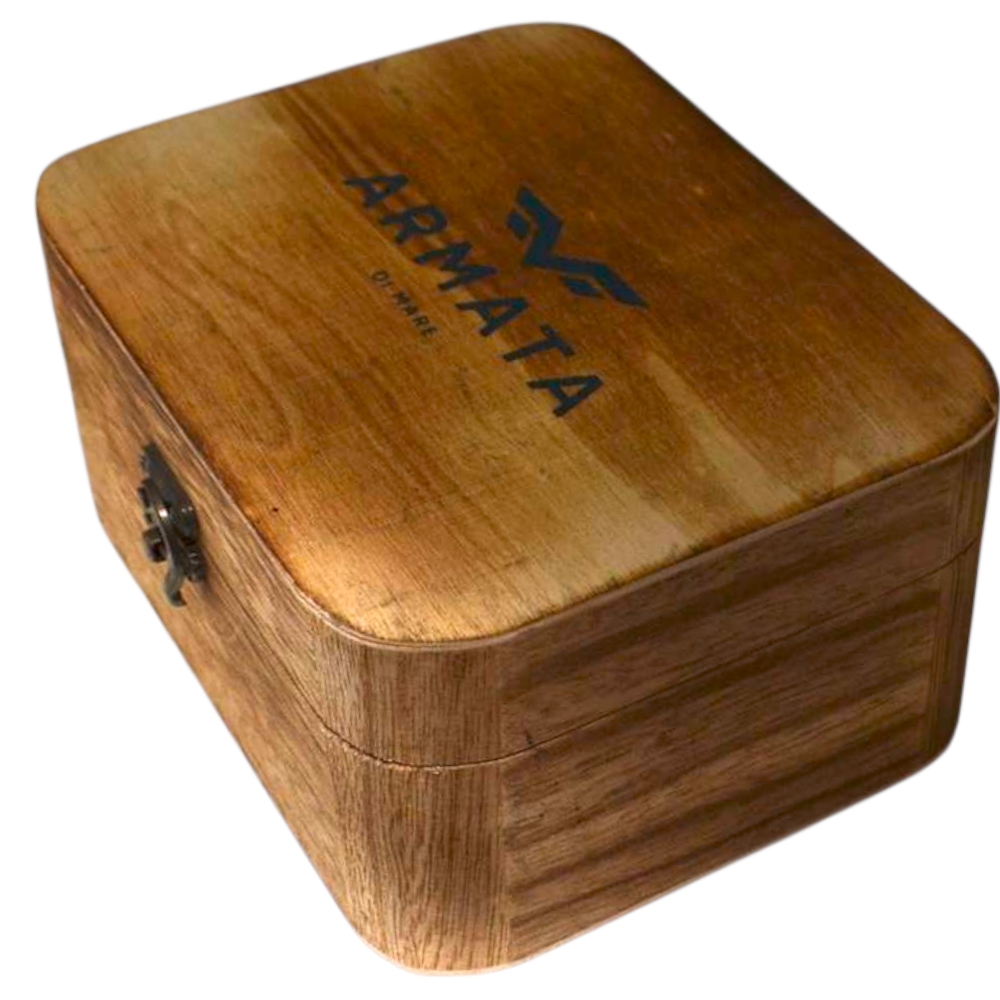 Cintura uomo vera pelle marrone martellato con doppia cucitura fibbia in metallo quadrata regolabile scatola legno.