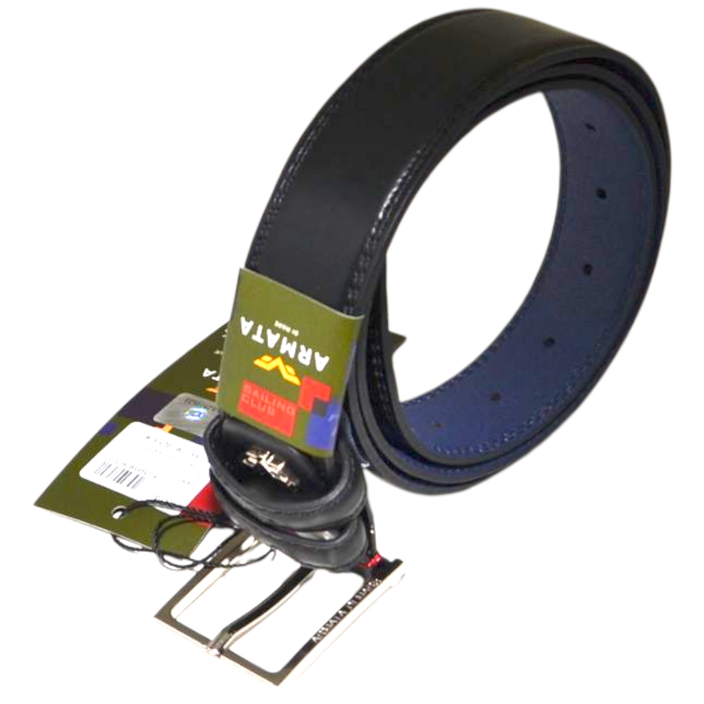 Cintura uomo blu vera pelle lucida doppio passante regolabile fibbia in acciaio nickel free made in italy business man.