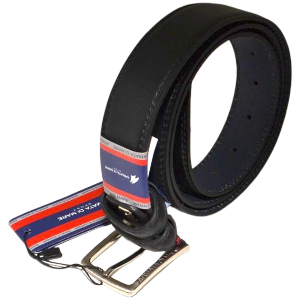 Cintura uomo nera in pelle scamosciata e tela regolabile fibbia in acciaio nickel free made in italy business man.