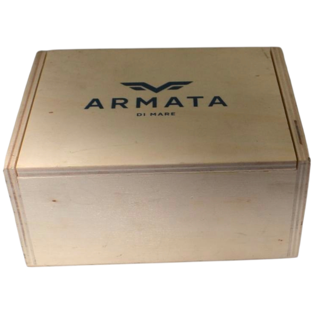 Cintura uomo vera pelle nera matta Armata di mare con fibbia in metallo quadrata regolabile scatola in legno.