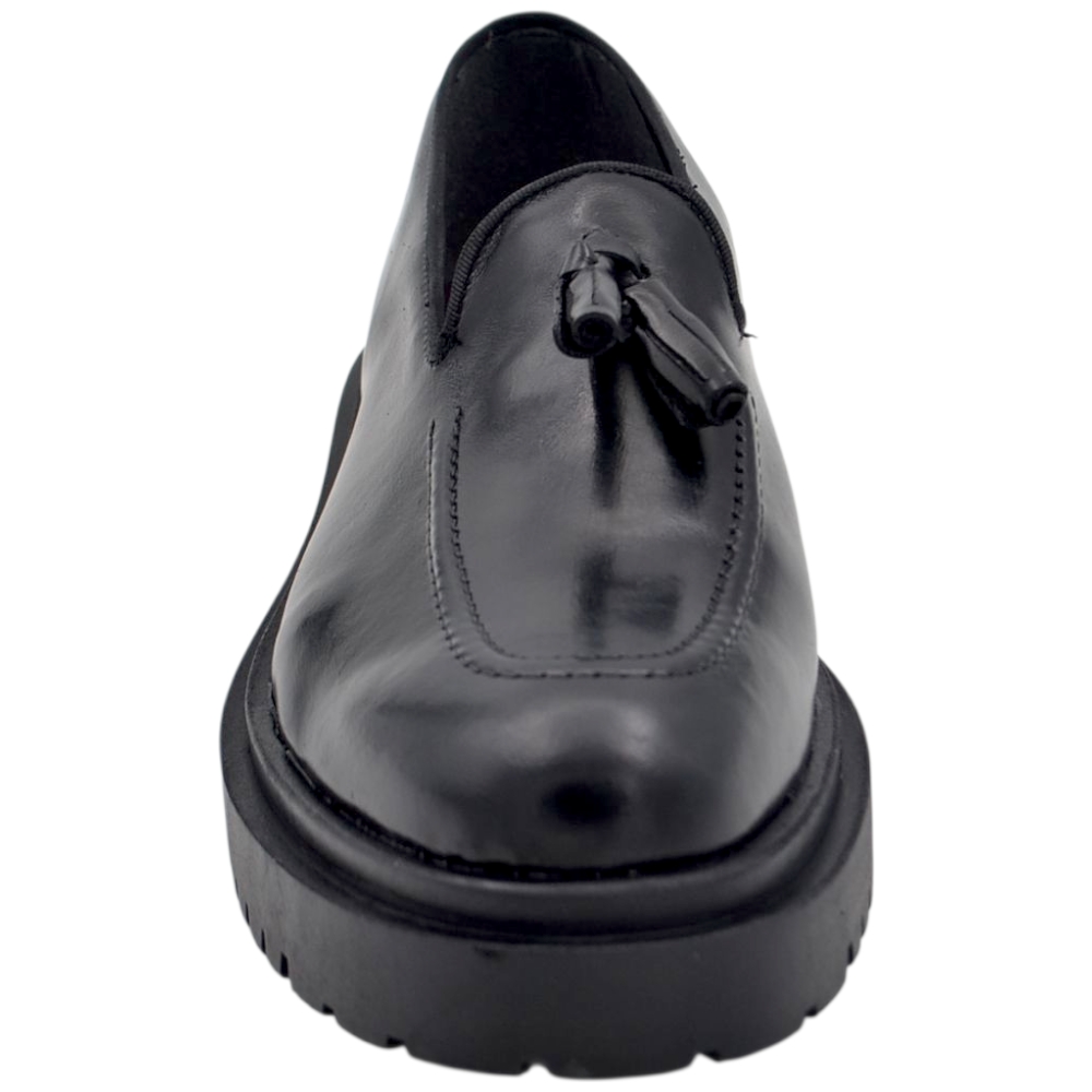 Mocassino uomo collage con bendina in vera pelle nappa nera matte classico elegante fondo cuoio antiscivolo cerimonia.