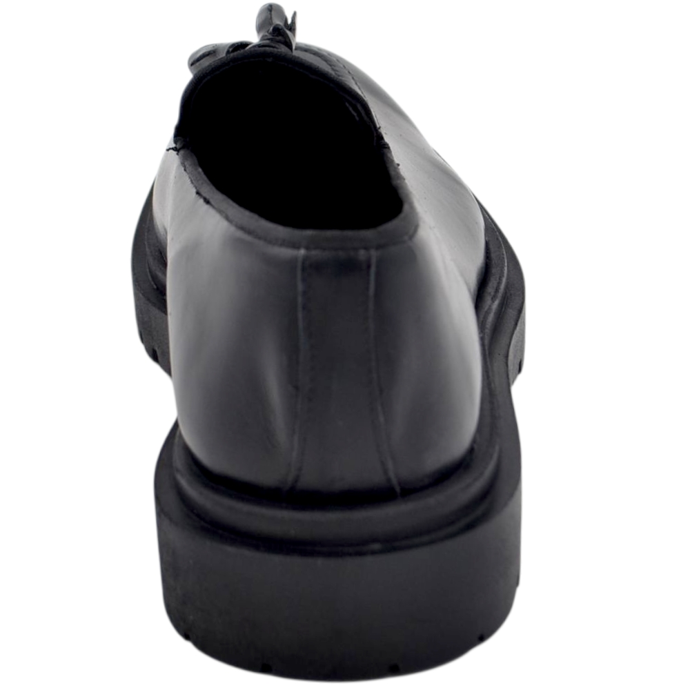 Scarpe mocassino uomo elegante morsetto argento vera pelle semilucida nero suola in cuoio antiscivolo cerimonia evento.