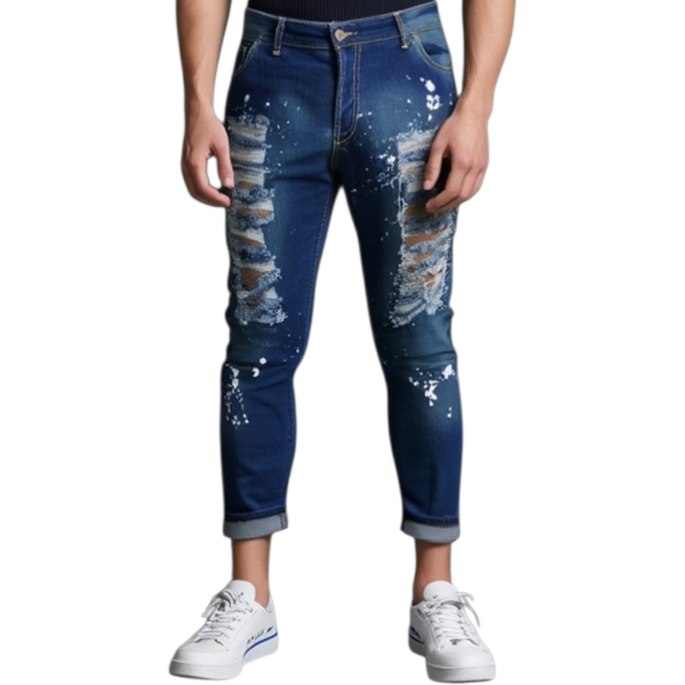 jeans uomo man blu stracciato monocromo moda made in italy.