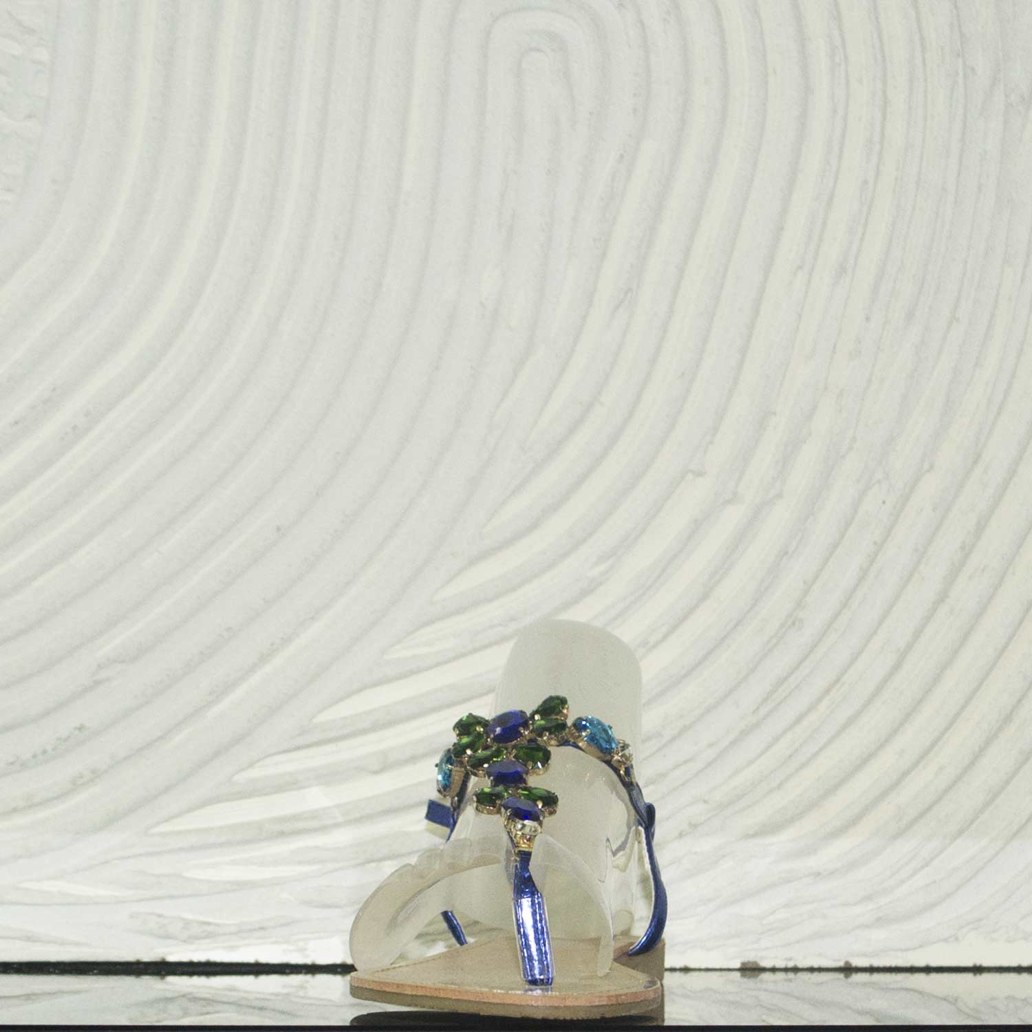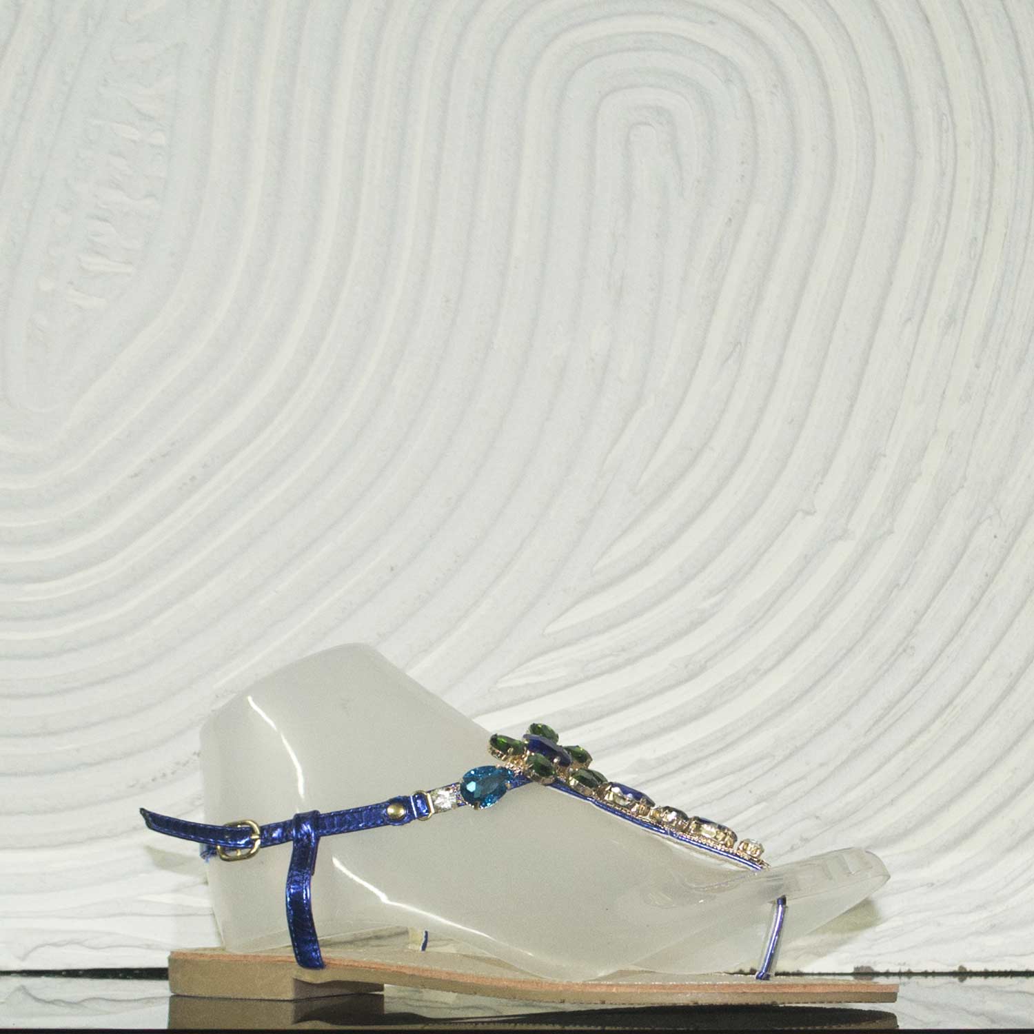 Scarpe donna sandali gioiello bassi blu cinturino gioiello multicolor frontale