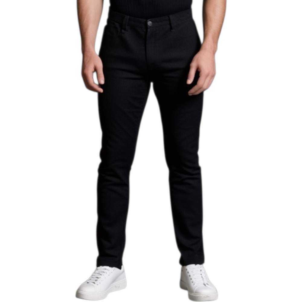 Pantalone Uomo Tinta Unita Panta Tuta Nero Tasca America Cavallo Basso Con Accessorio Filo E Ganci Moda.