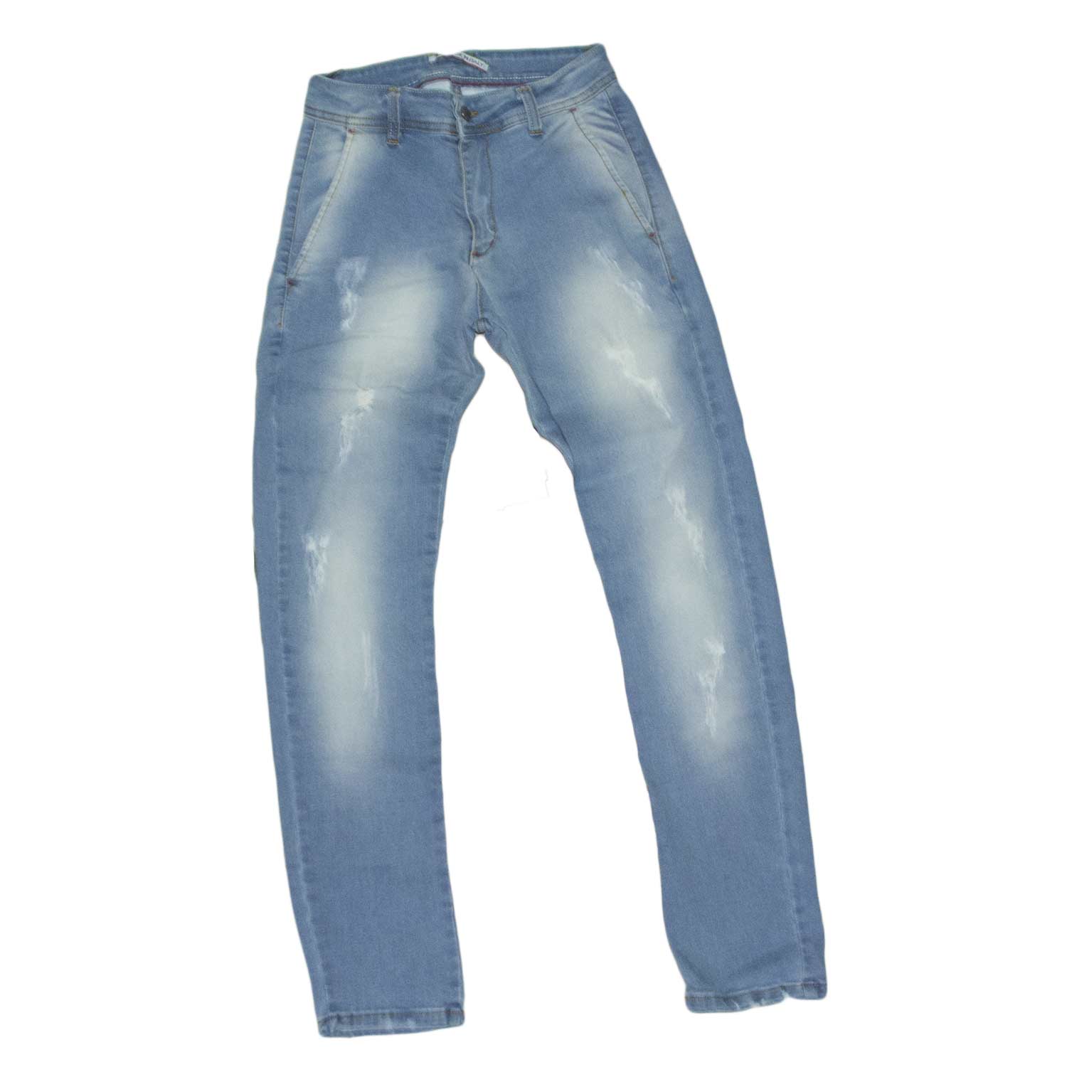 Pantaloni Jeans chiaro denim biker sfumato Skinny fit chiusura con bottone e cerniera. lavaggio graduale vintage.
