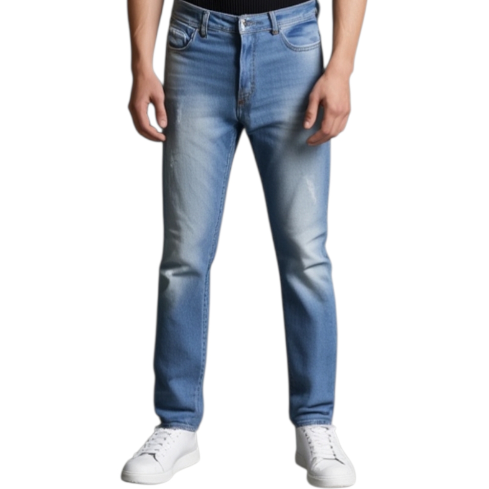 Pantalone Jeans Uomo Denim Rotture Mod Jeans Effetto Sfumato Cinque Tasche Con Rotture Moda Giovanile.