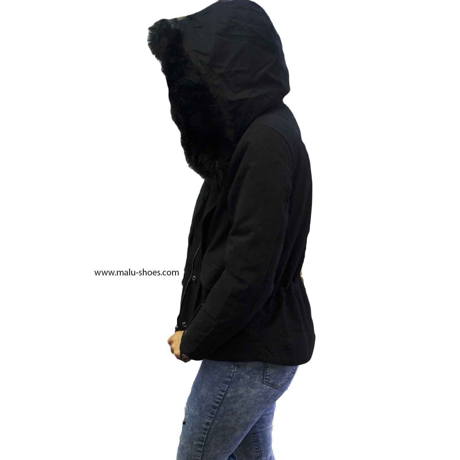 Parka donna corto nero con pelliccia voluminosa nero glamour