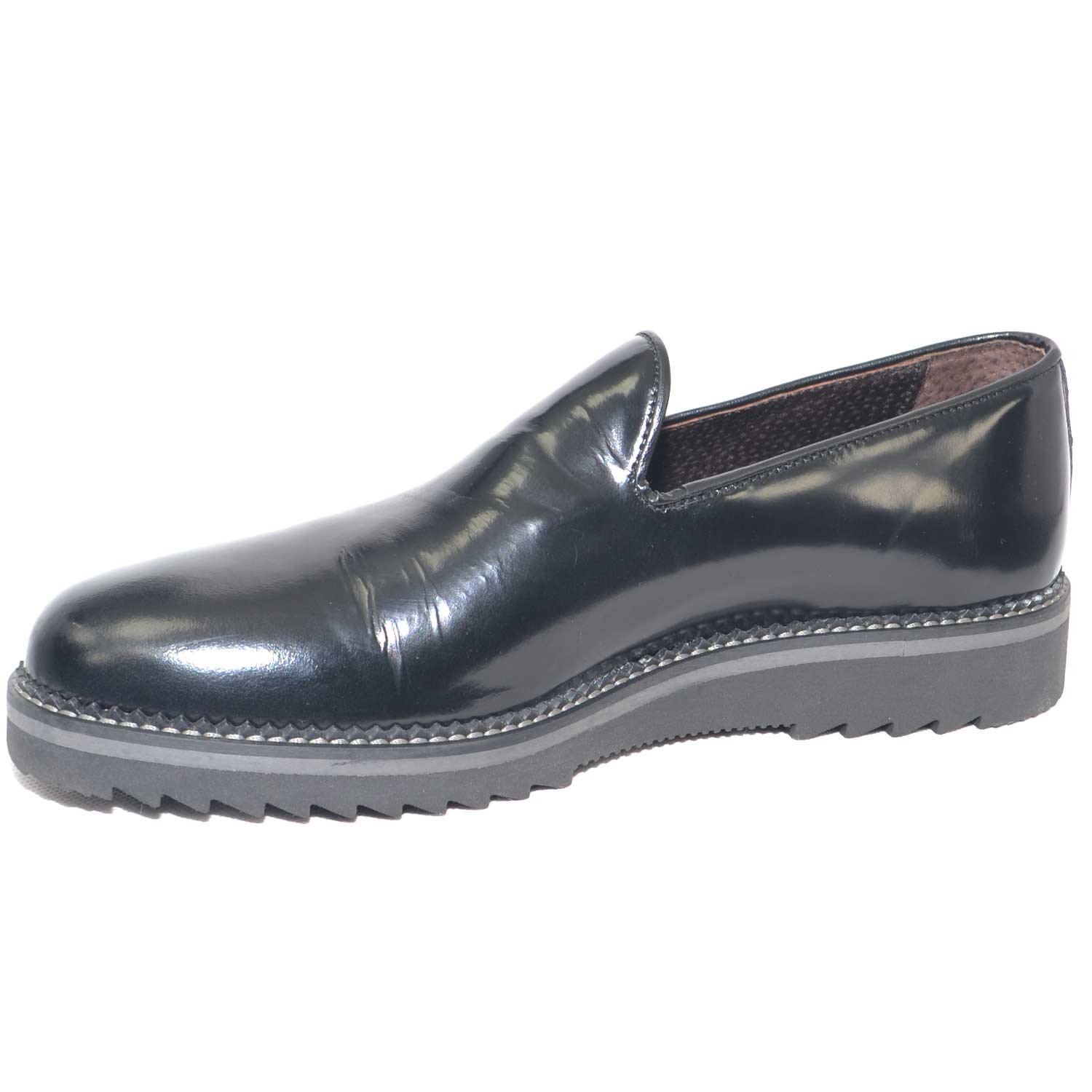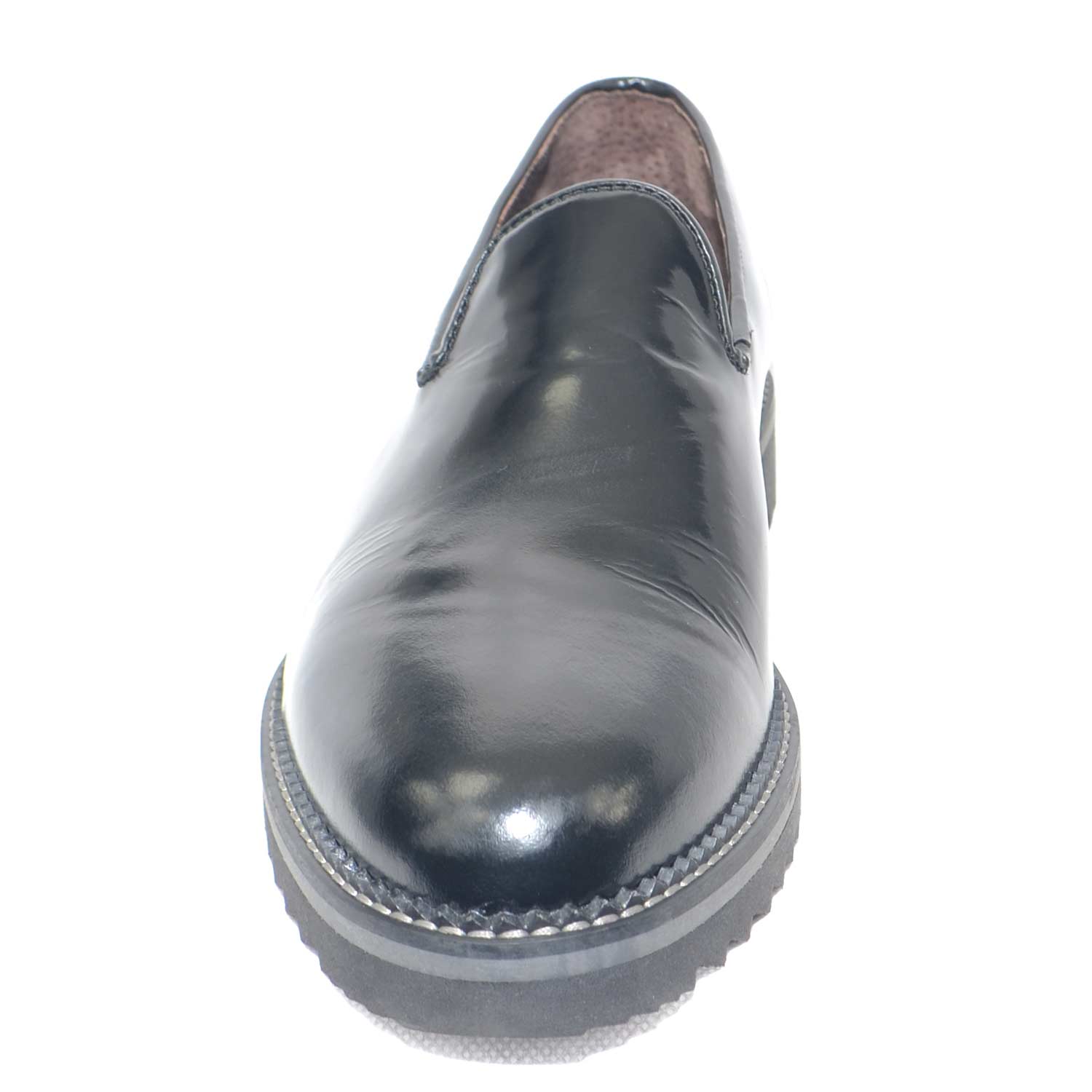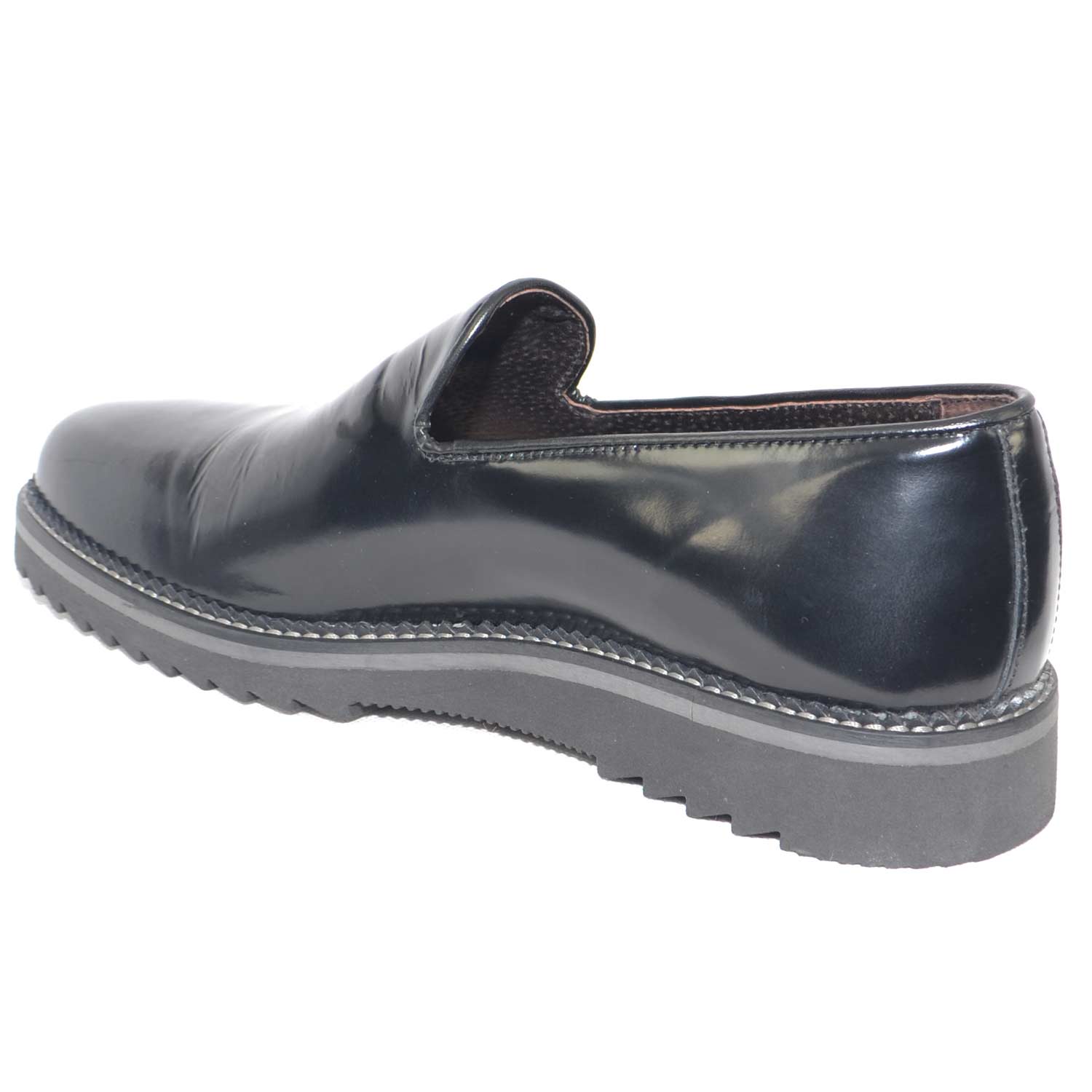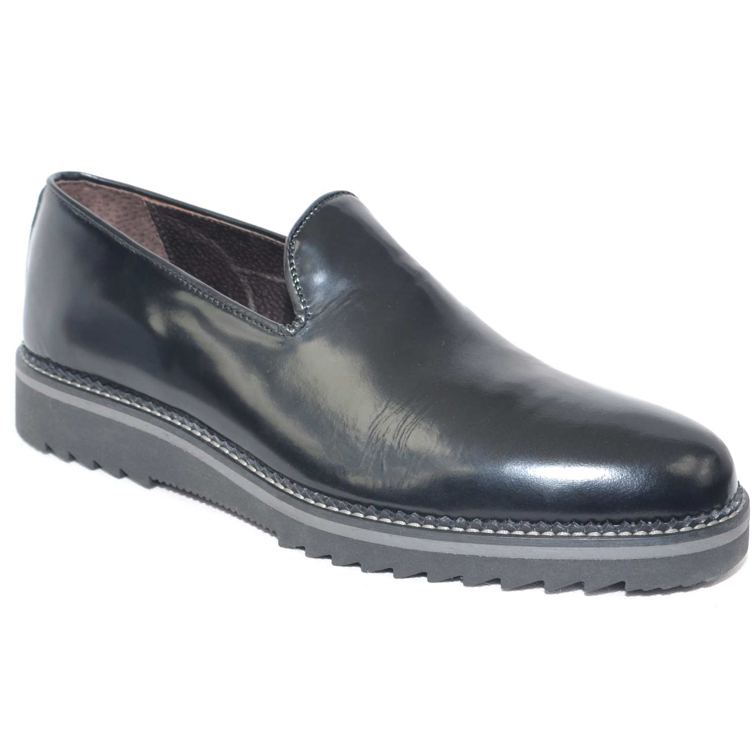 Scarpe uomo mocassino pelle nero lucido abrasivato fondo righo grigio squaletto comfort made in italy