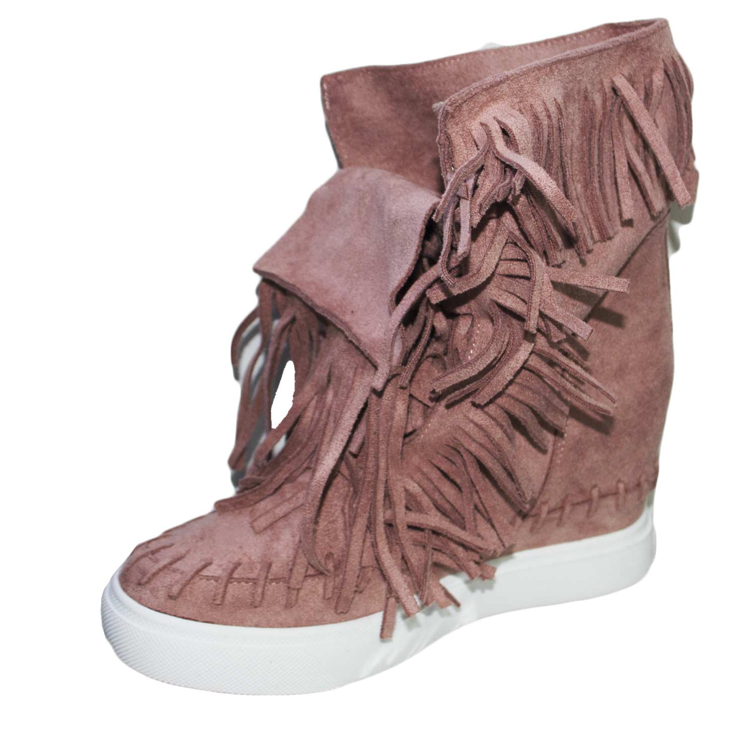 Sneakers con para interna rosa frange lunghe in camoscio nero moda trendy comode