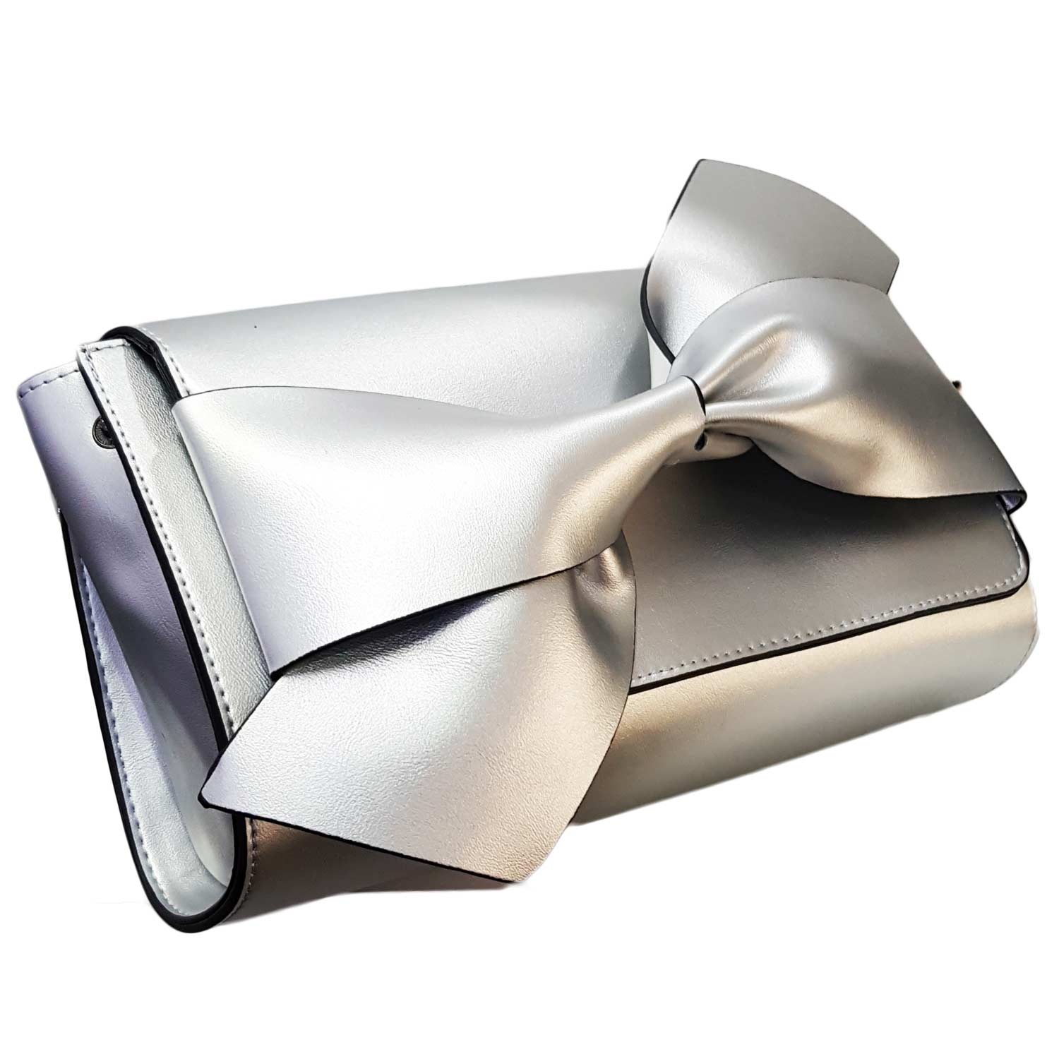 Pochette donna art 3212 argento fiocco moda tendenza casual eco pelle