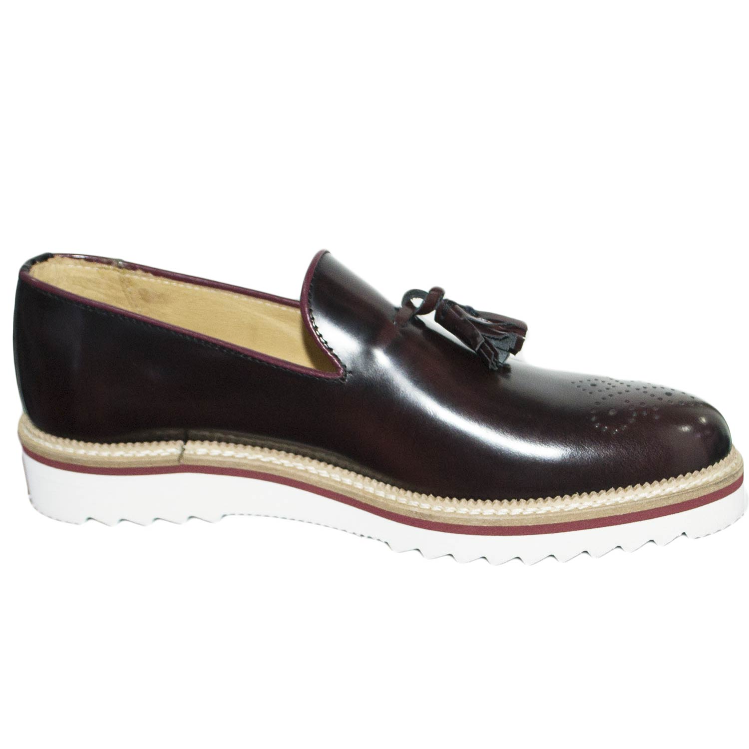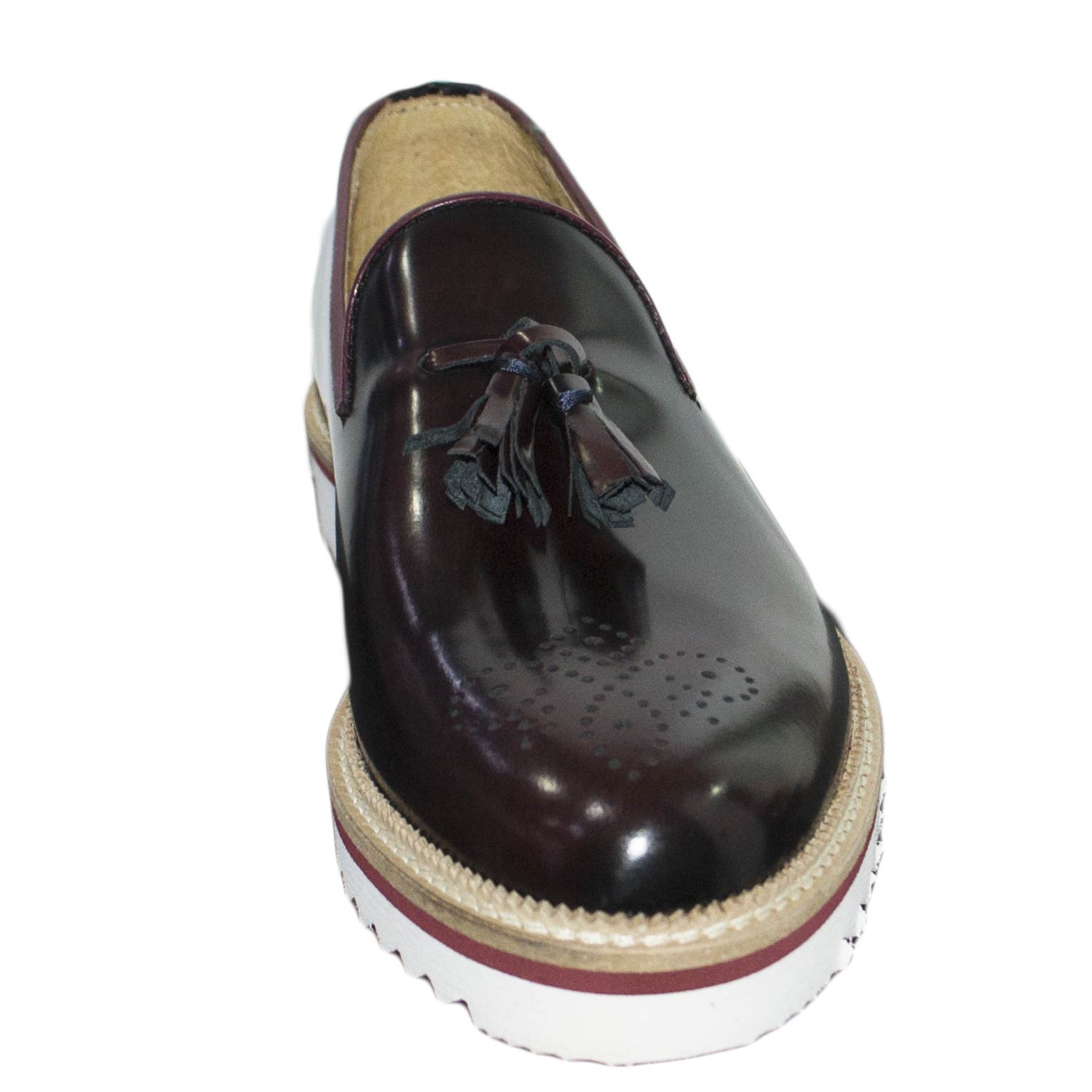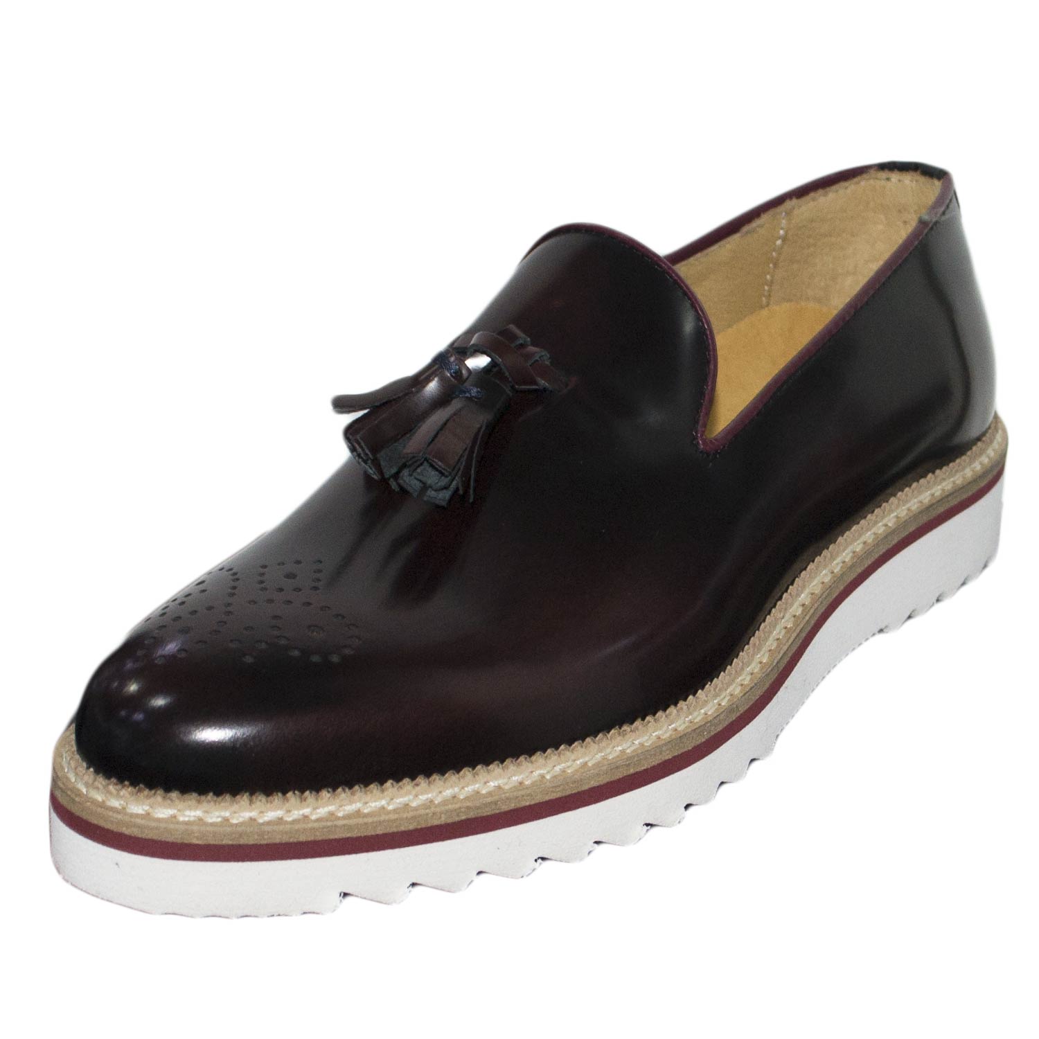 Scarpe uomo mocassino college inglese bordeaux vera pelle abrasivato spazzolato bendina made in italy fondo light roccia.
