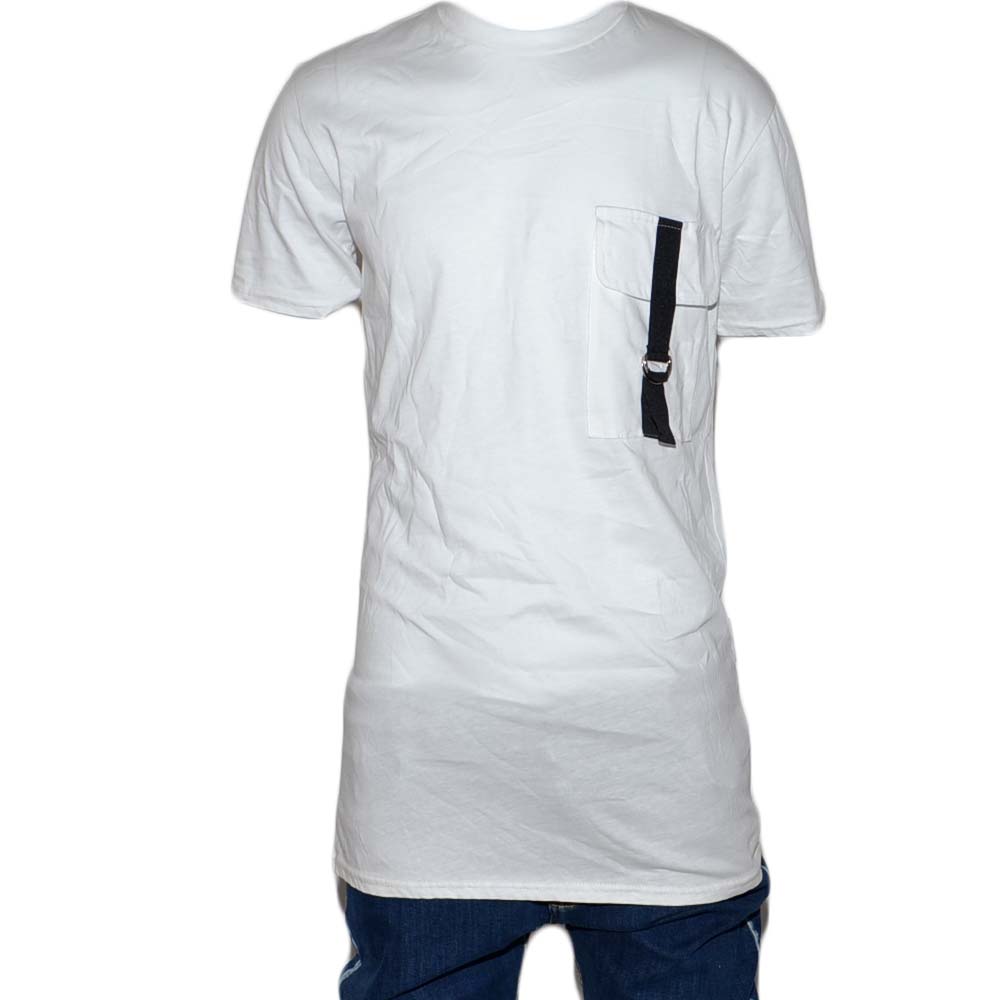 T- shirt basic uomo in cotone bianco slim fit girocollo con cucitura a coste nero e taschini made in italy.