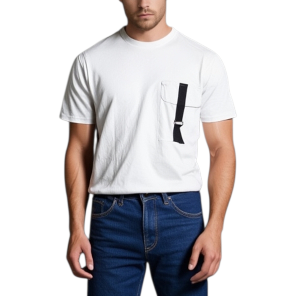 T-shirt uomo maglietta made in italy collo rotondo e maniche corte con design nero taschino e accessorio cucito moda