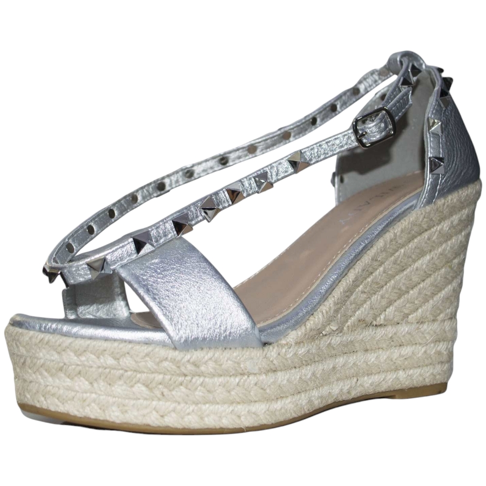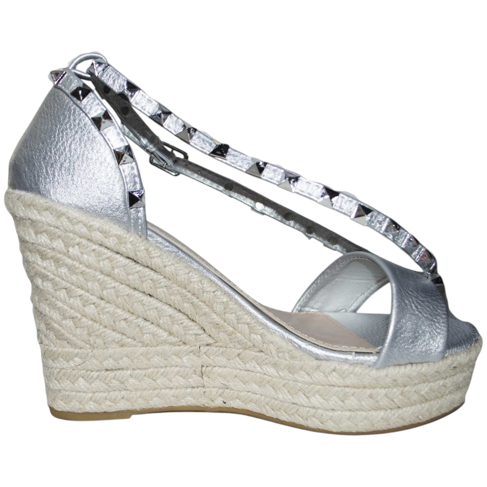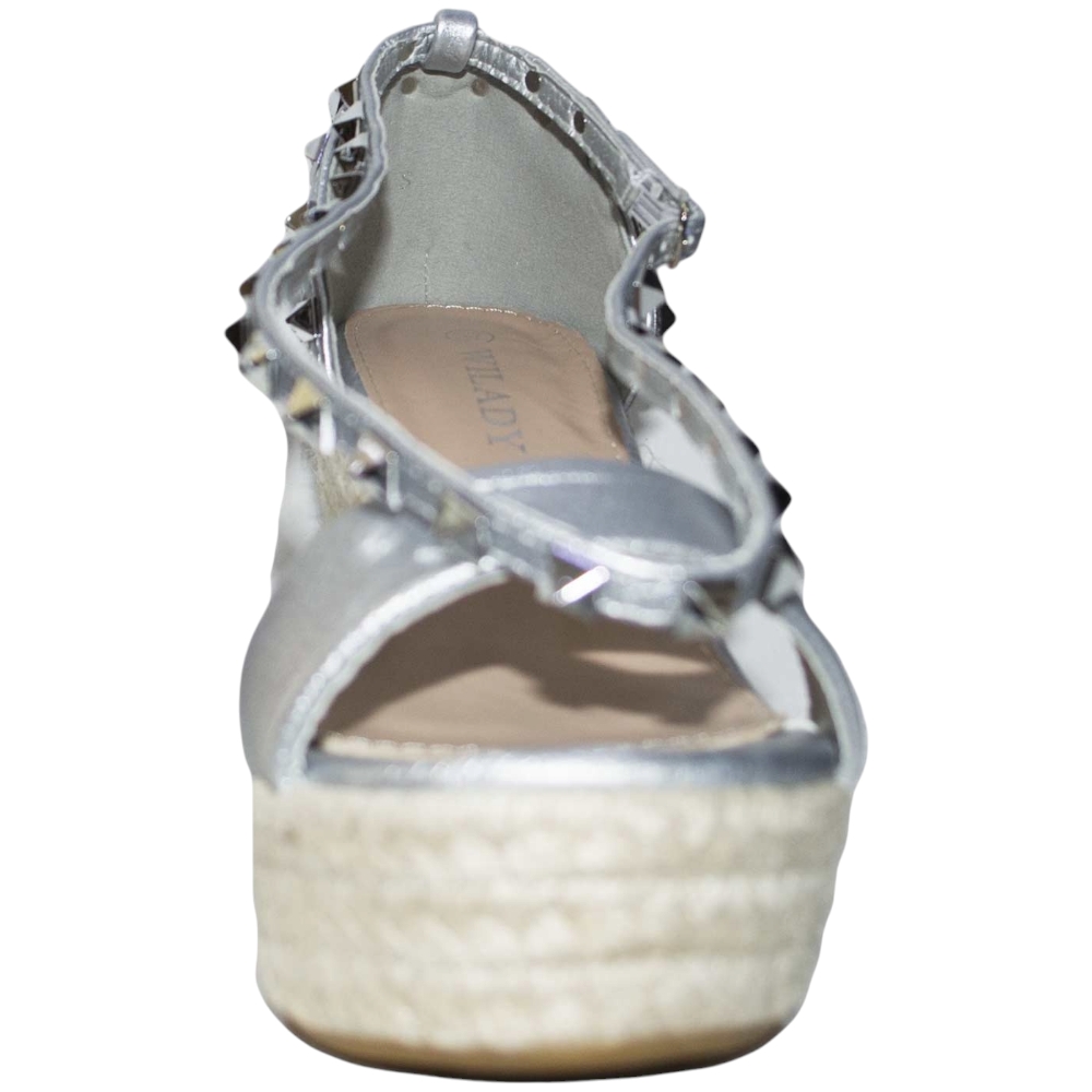 Calzature donna art.wi8950 riporto in paglia moda comfort borchie TONO SU TONO ARGENTO