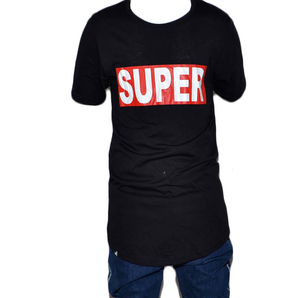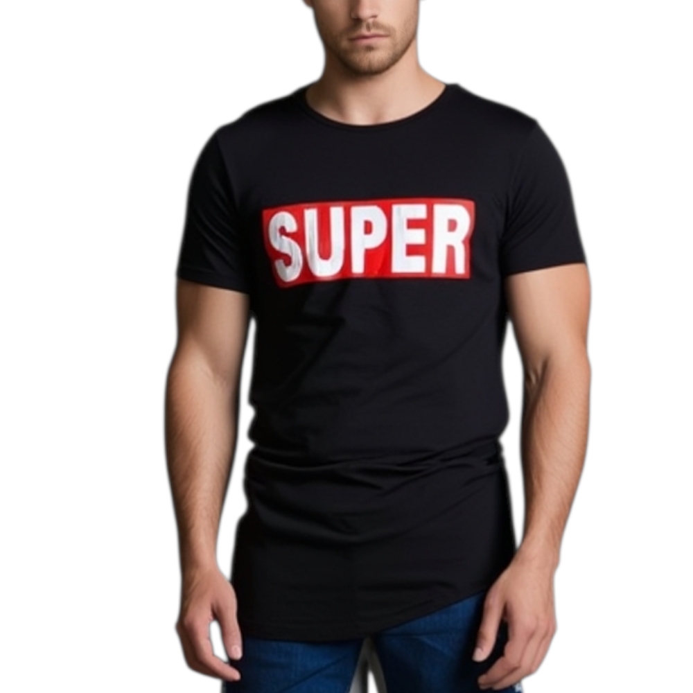 T-shirt uomo minimale a girocollo tinta unita nera con stampa '' SUPER