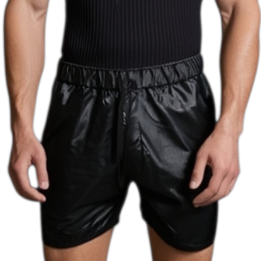 Realizzato in nylon, elastico in vita con laccetto. Modello slim fit, vestibilità aderente.