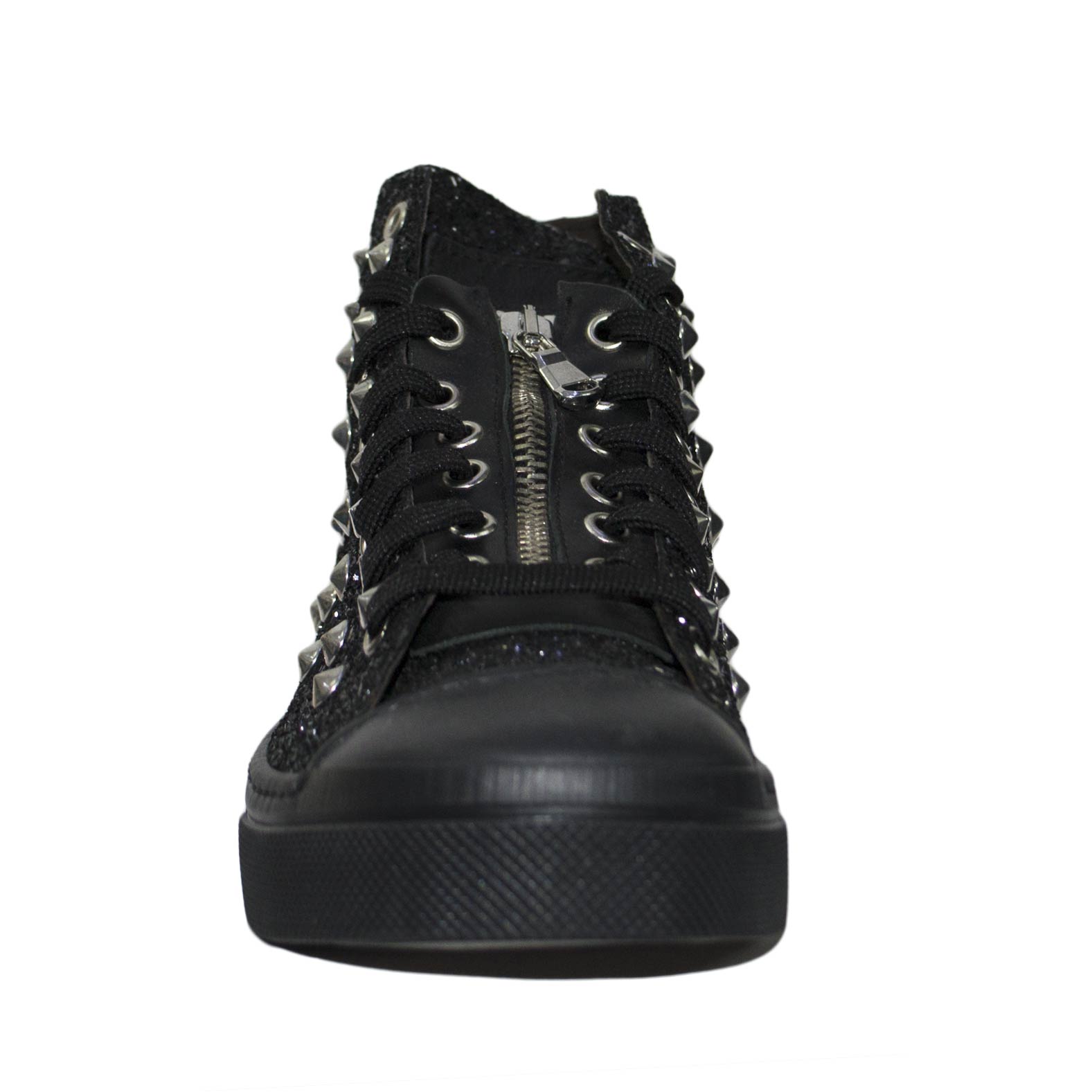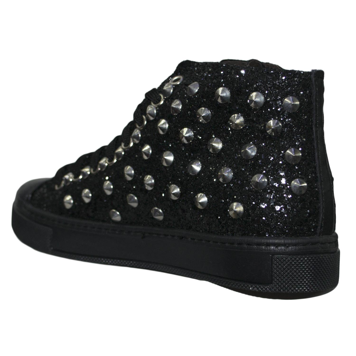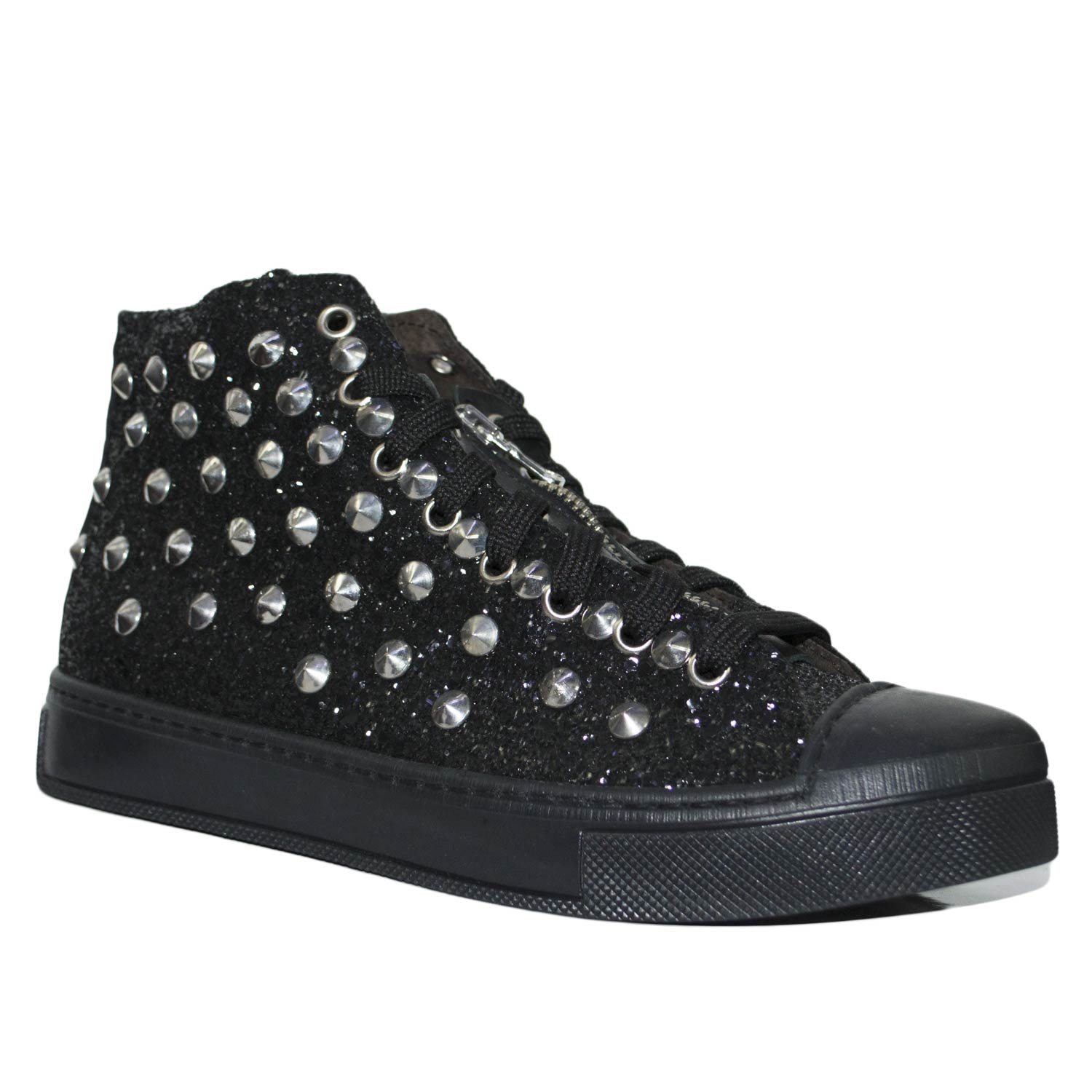 Sneakers alta art.sb078 nero con glitter made in italy con fondo antiscivolo moda comfort