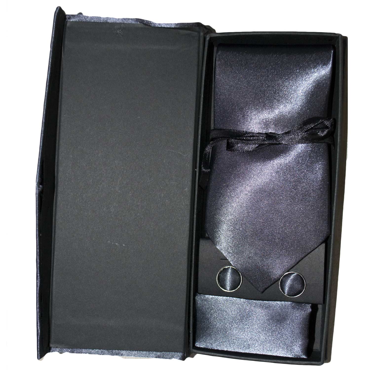 Set coordinato uomo cravatte con gemelli e pochette grigio scuro elegante cerimonia