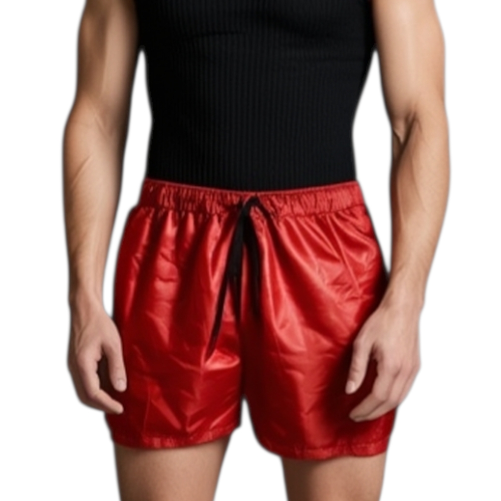 Costume mare uomo box corto rosso monocromatico in tessuto semilucido opacizzato slim fit trend asciugatura rapida