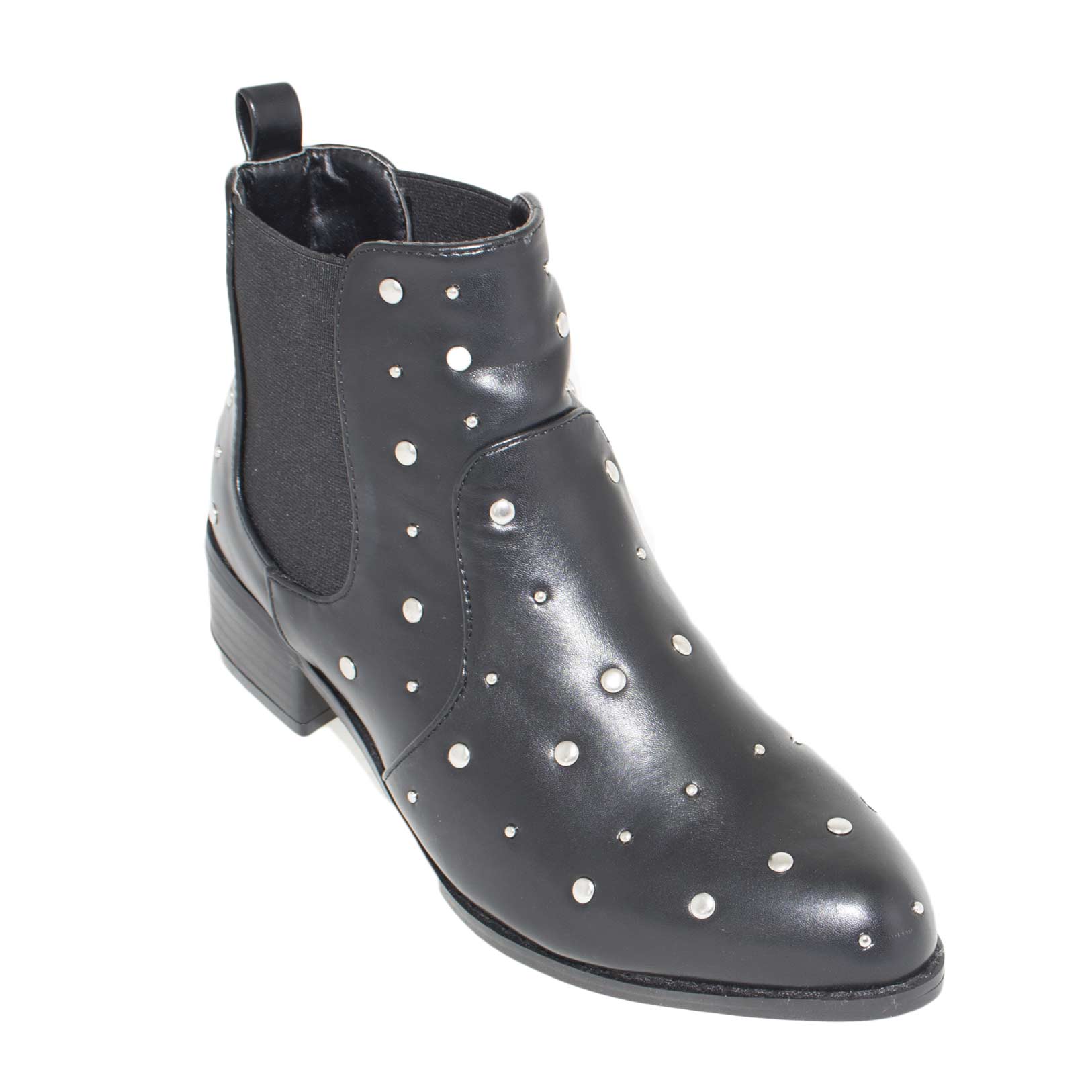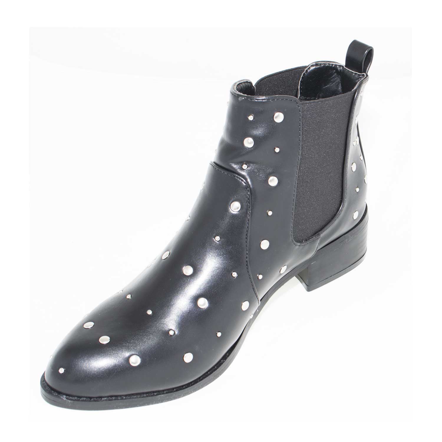 stivaletti beatles donna art.an5543 nero in pelle con borchie moda glamour