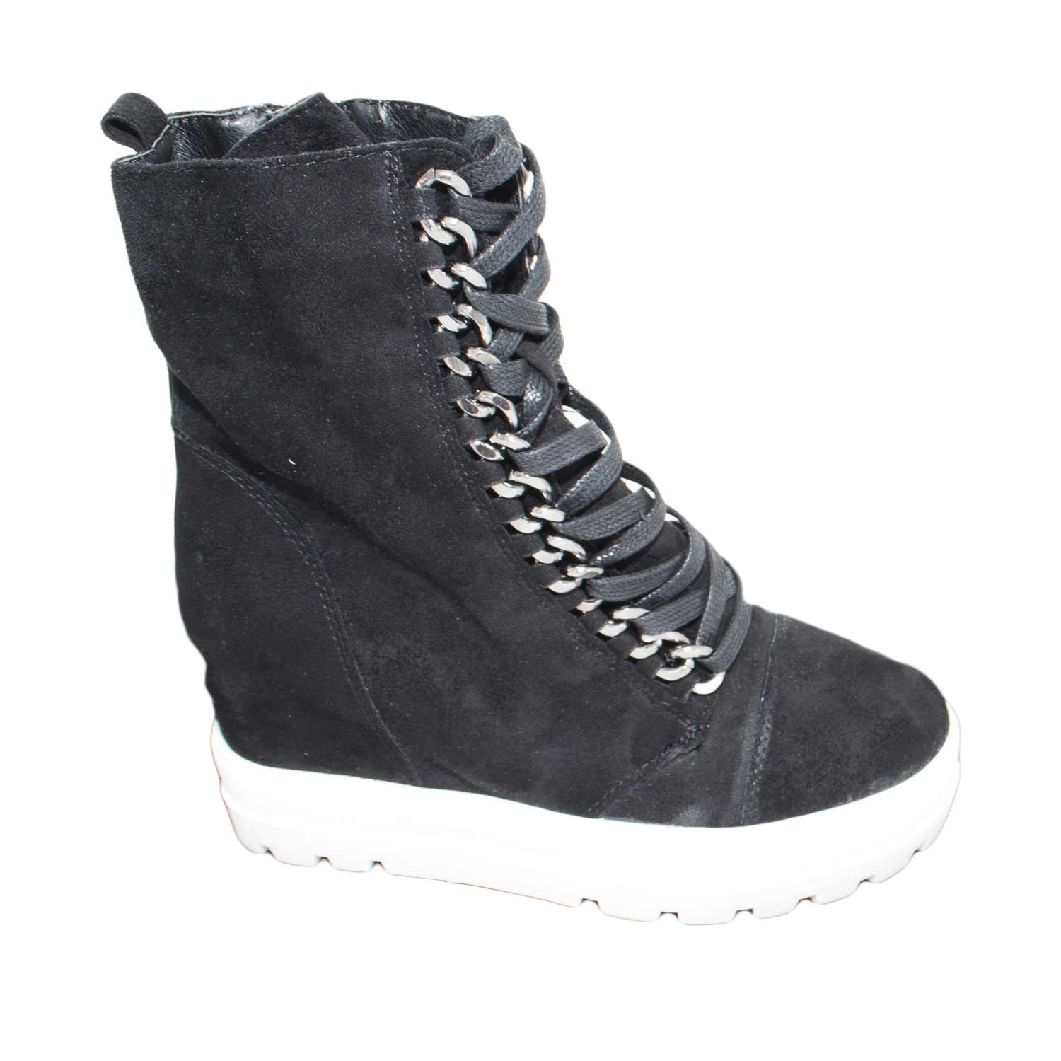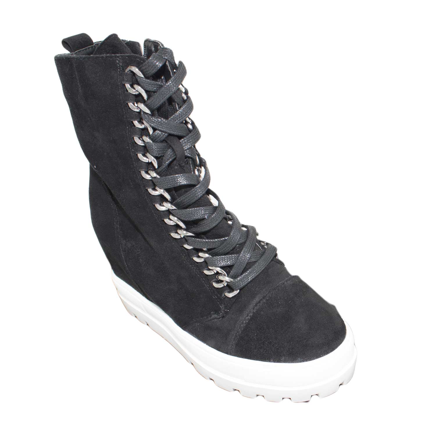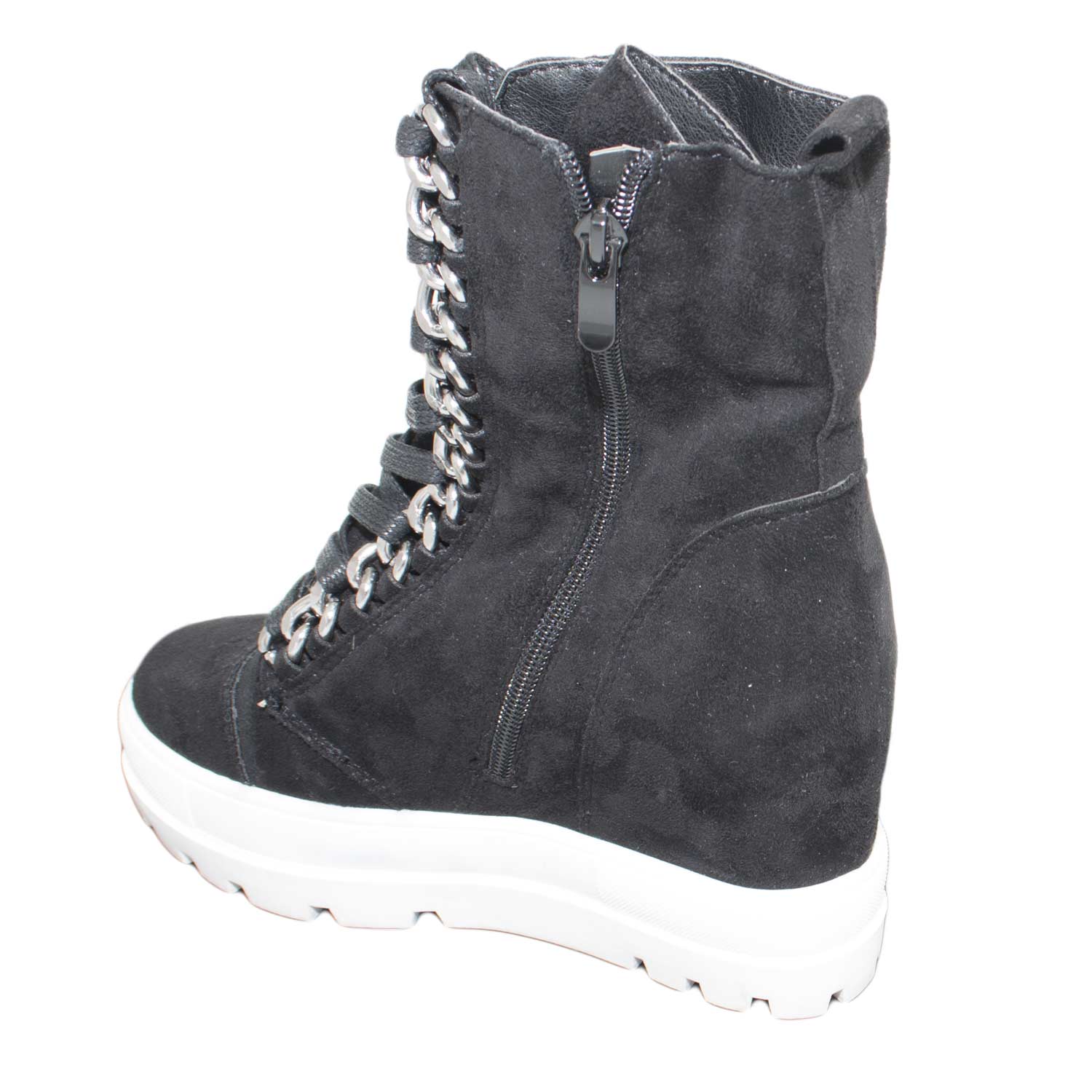 Sneakers alta donna art.sa7788 nera camoscio zeppa interna para alta antipioggia moda glamour