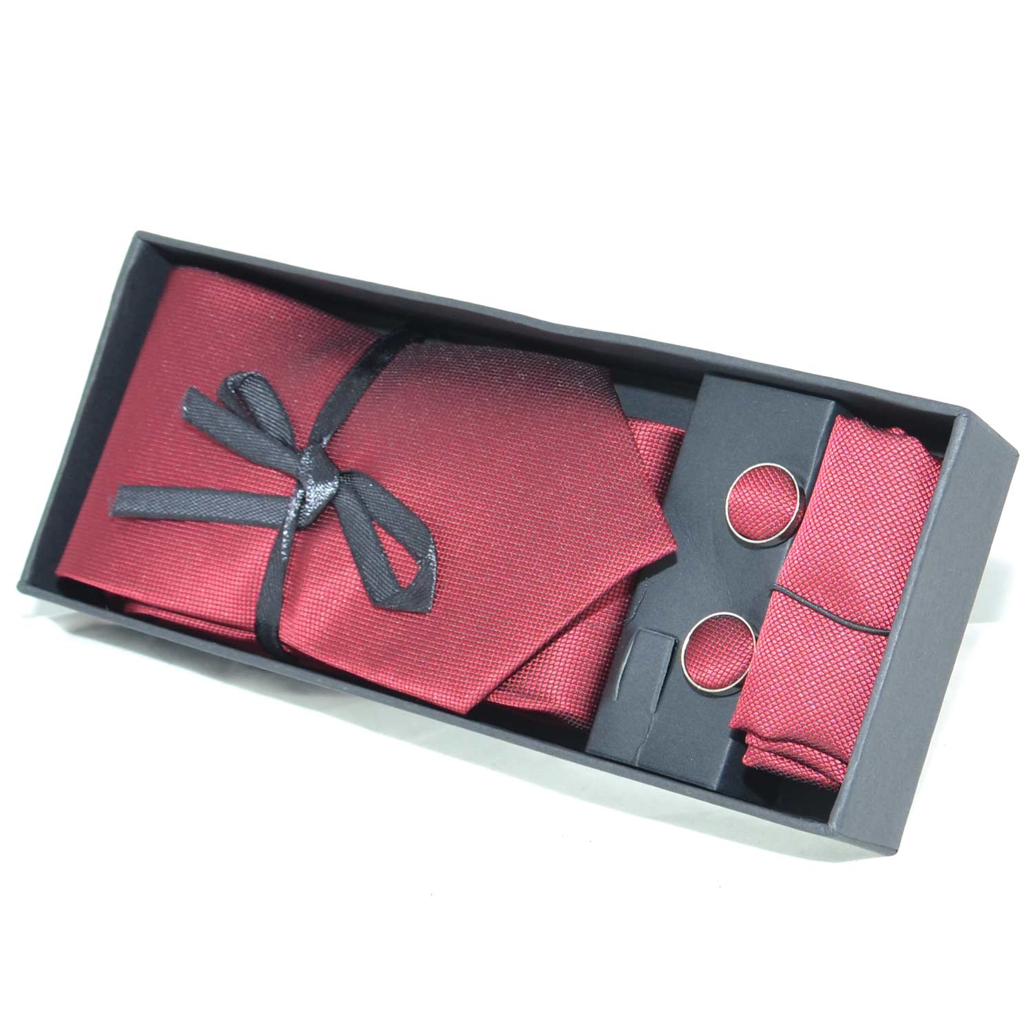 Set coordinato uomo cravatte con gemelli e pochette rosso elegante cerimonia