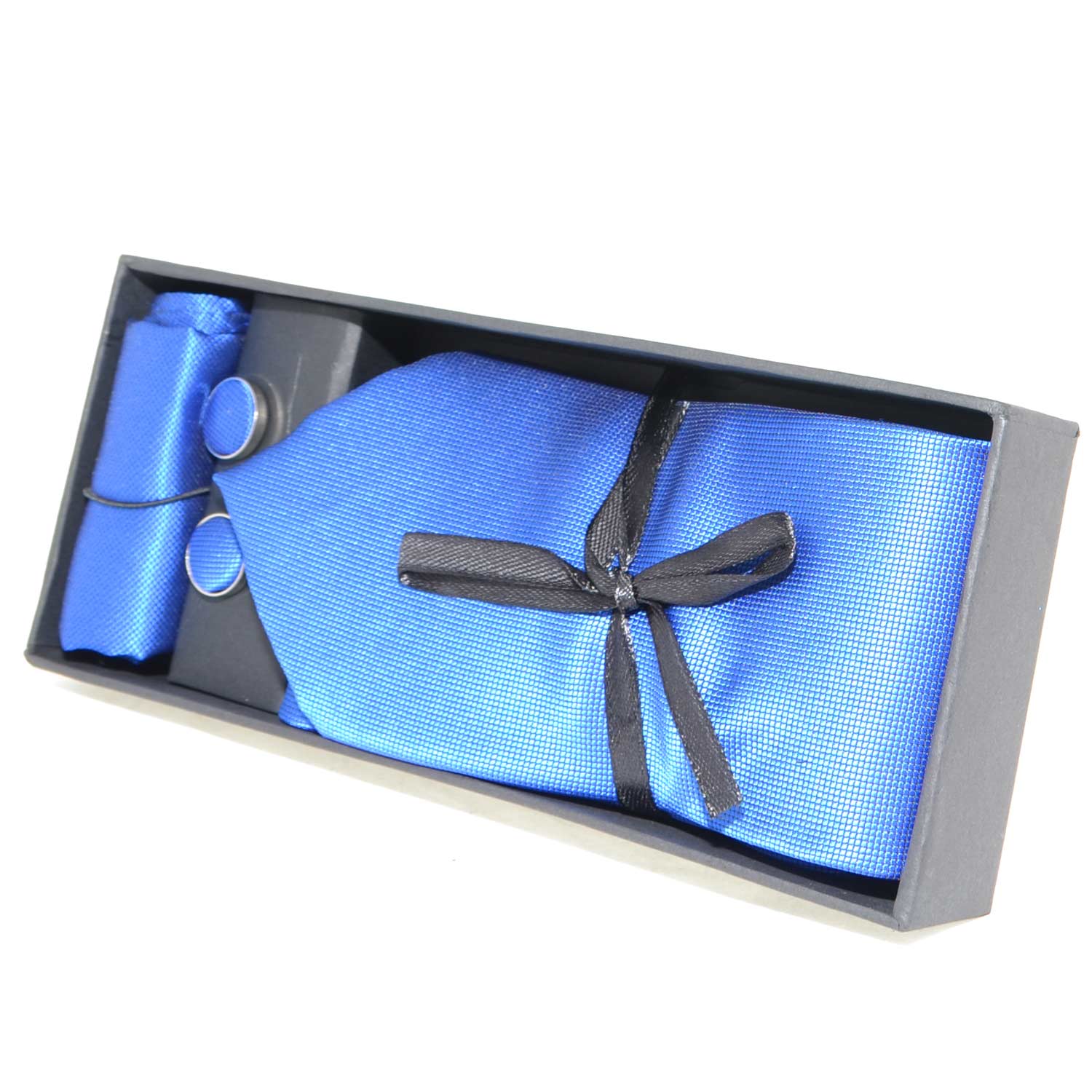 Set coordinato art:00235 uomo cravatte con gemelli e pochette blu fantasia elegante cerimonia