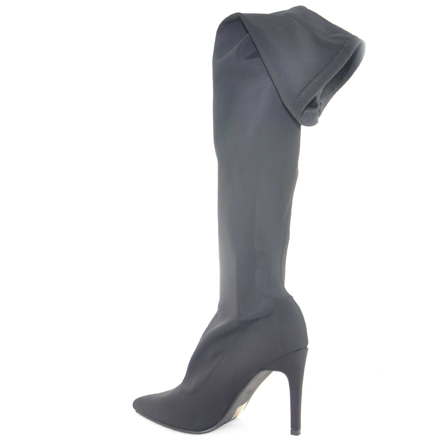 Stivali alti tessuto donna art:sp01022 tacco a spillo linea punta moda glamour luxury