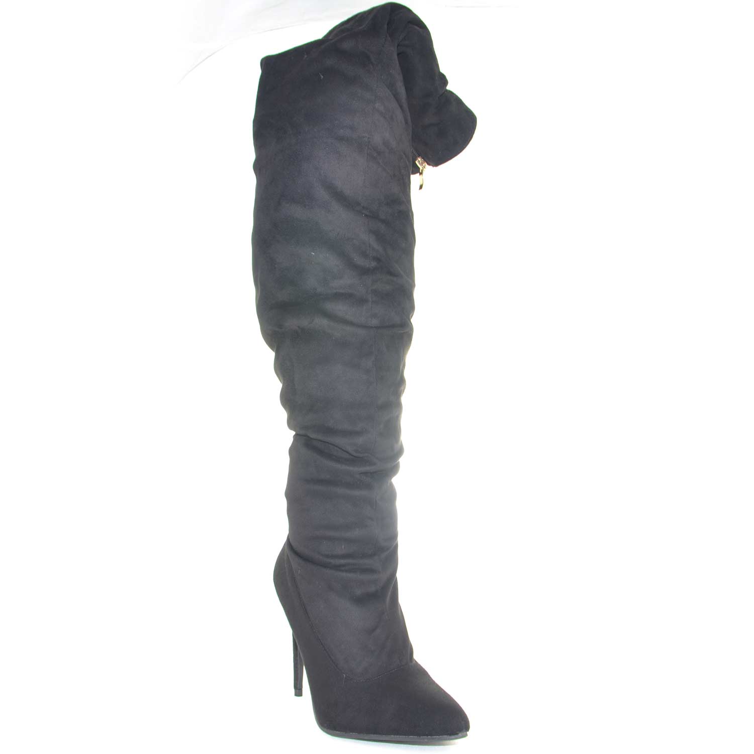 Stivali alti camoscio donna art:sp01022 tacco a spillo linea punta moda glamour luxury