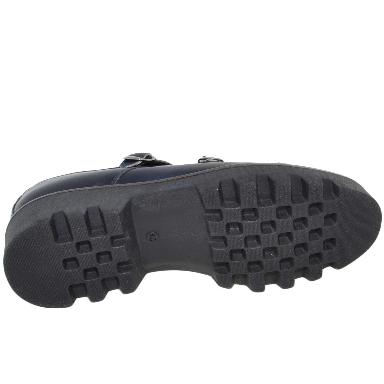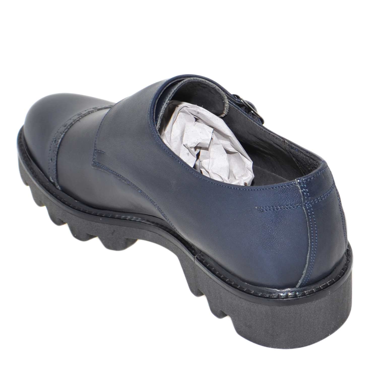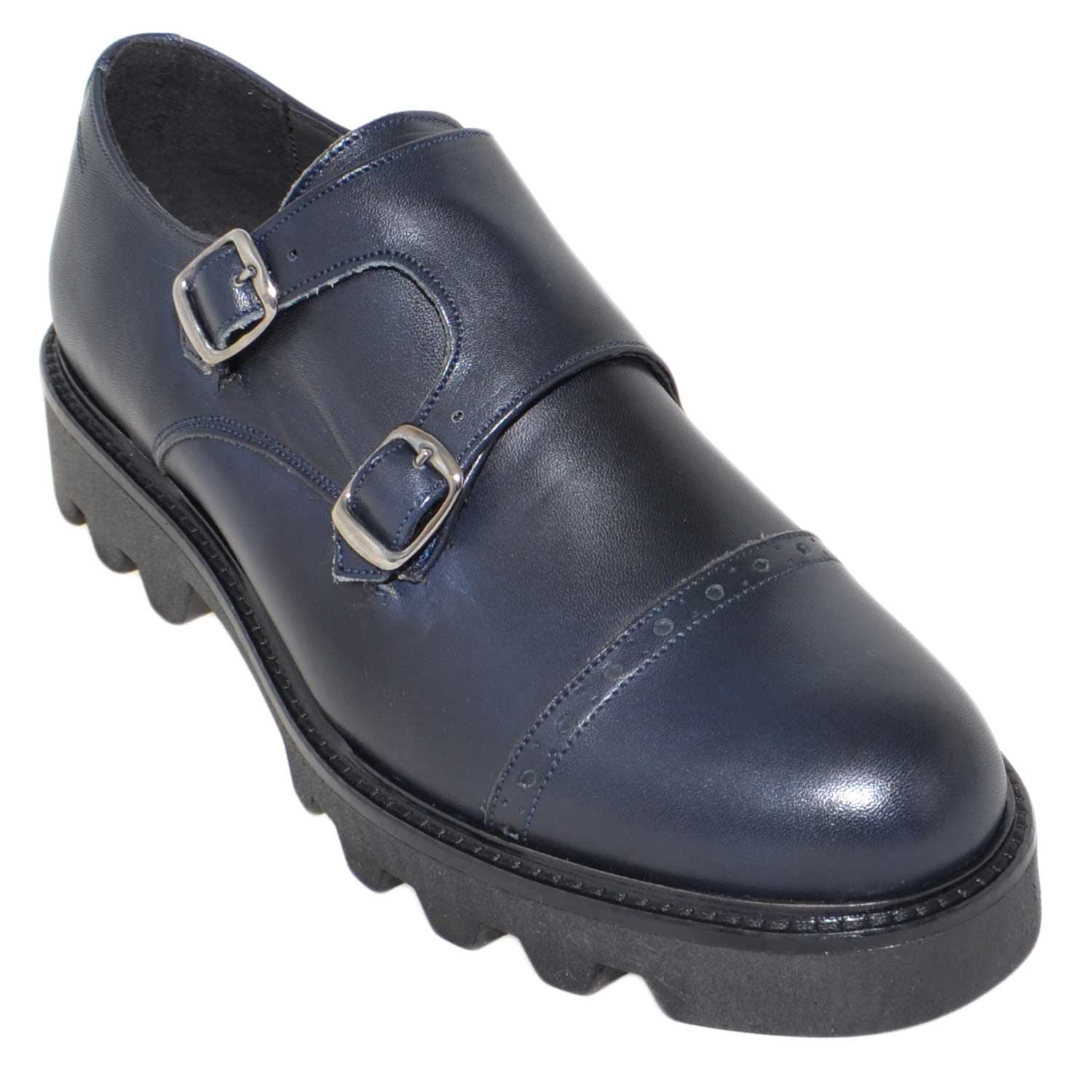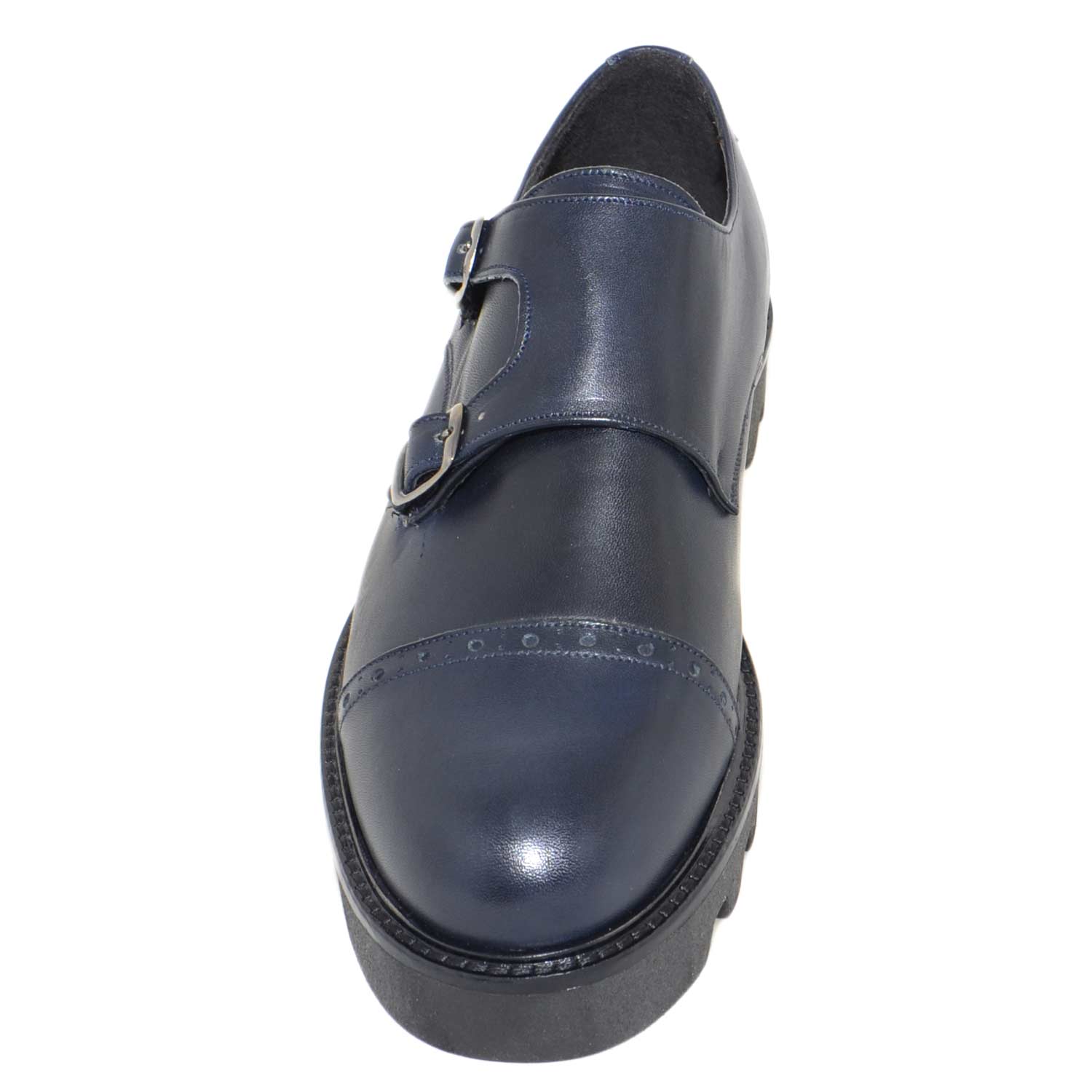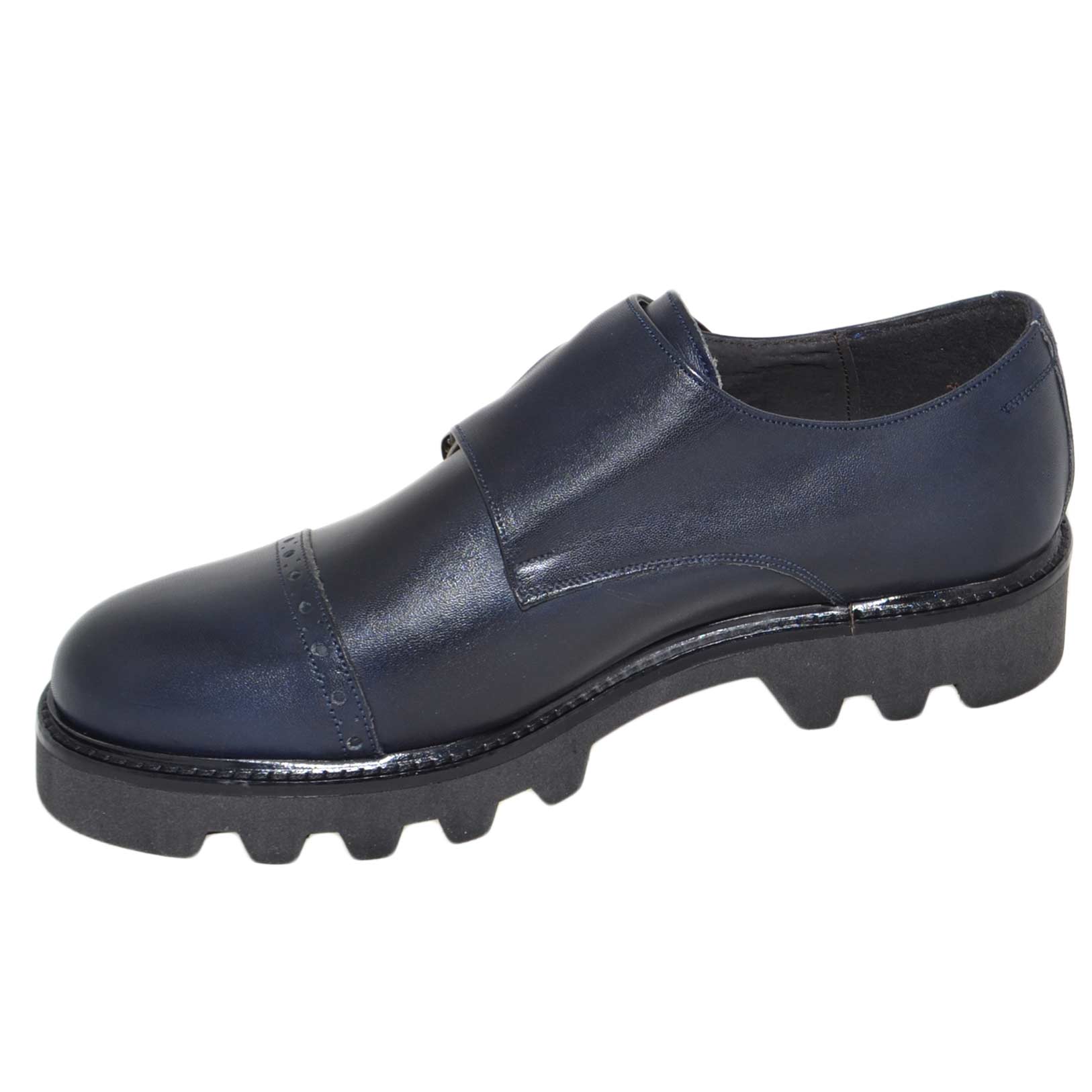 Calzature uomo art 9677 doppia fibbia vera pelle crust blu fondo imperial antiscivolo made in italy