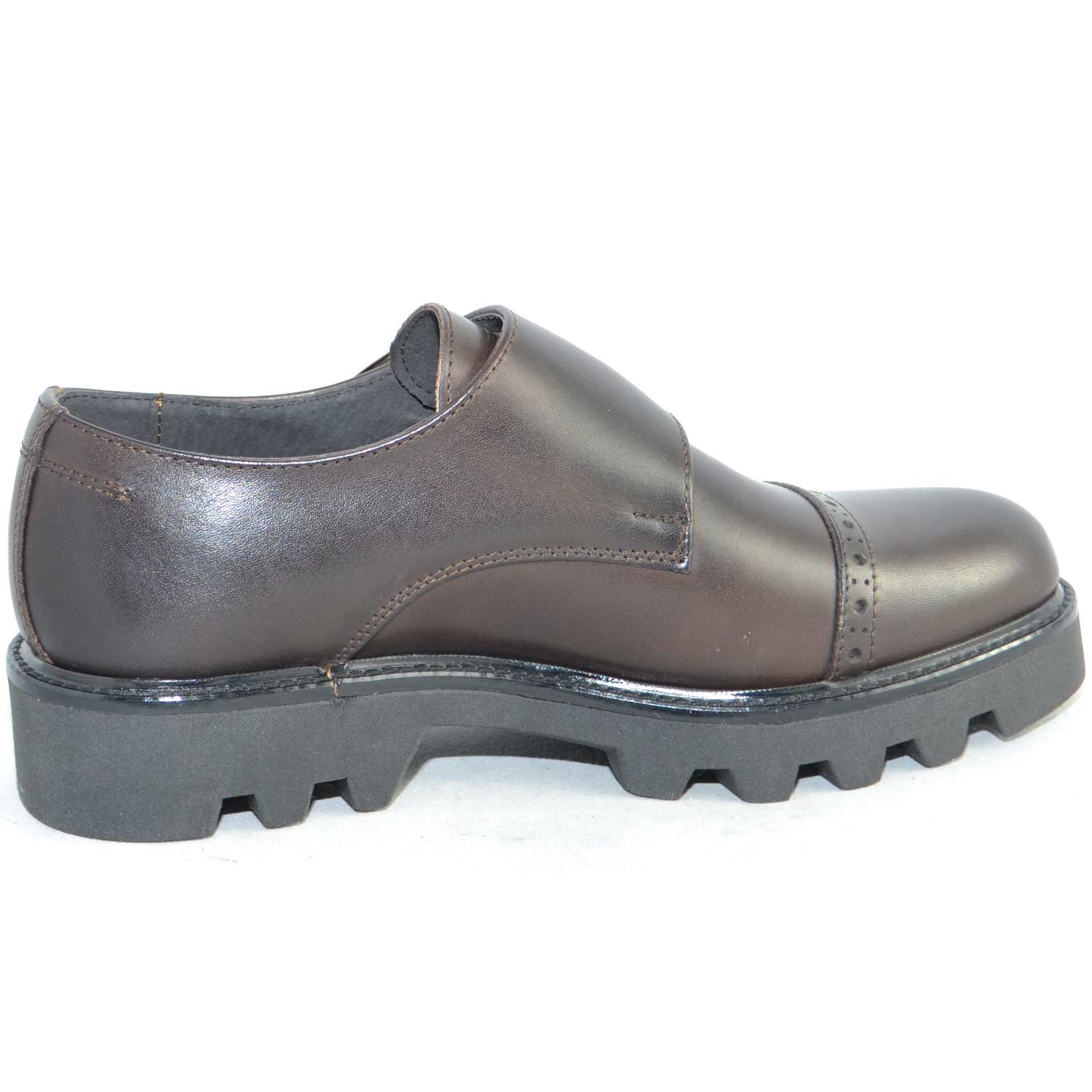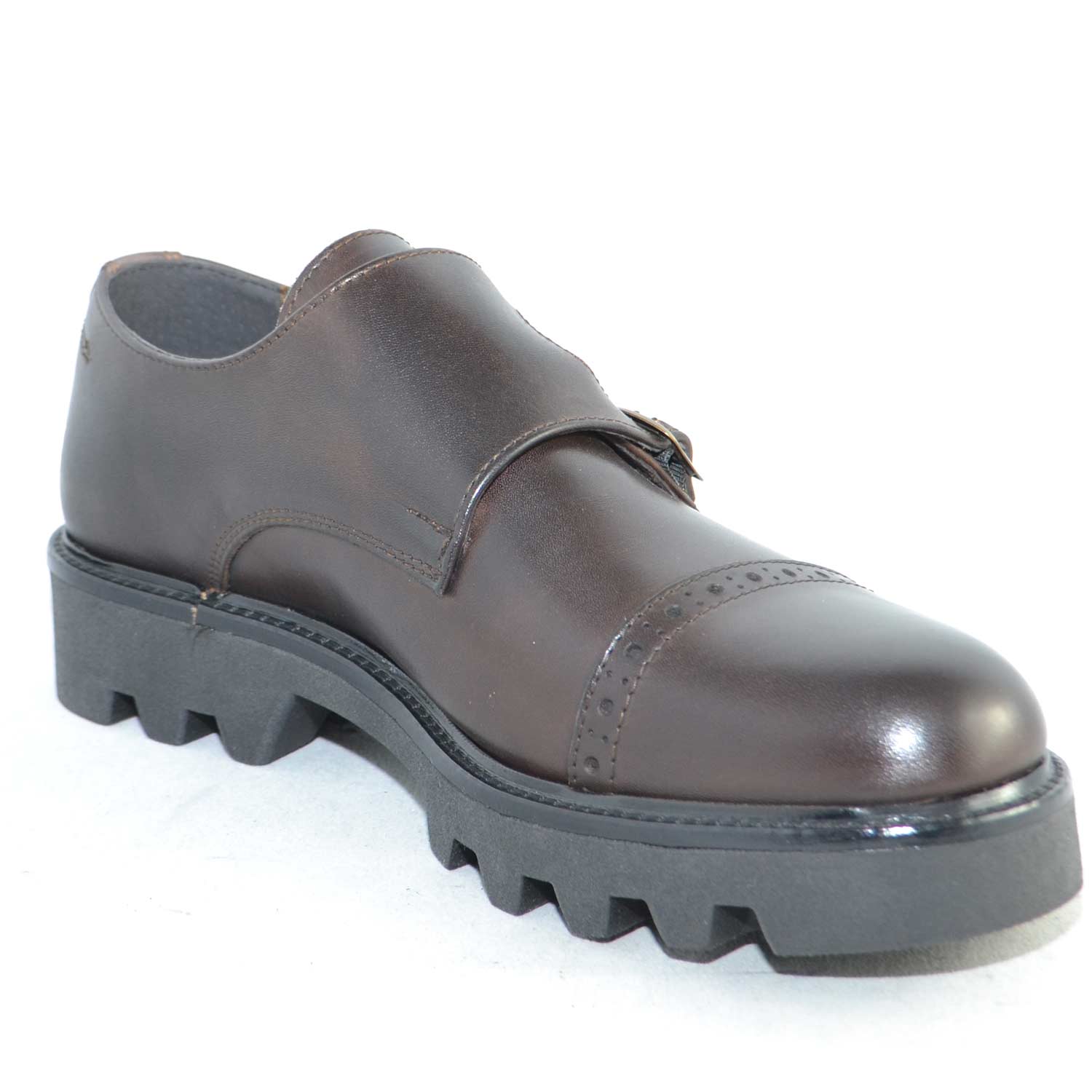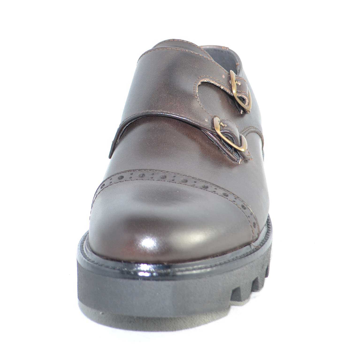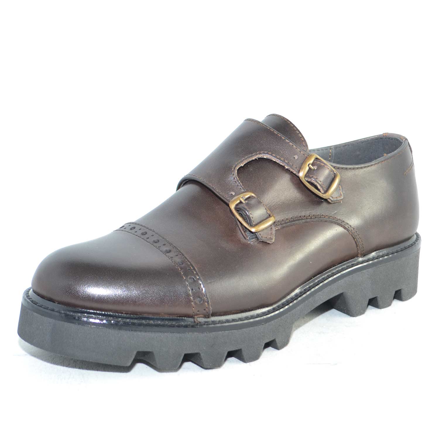 Calzature uomo art 9677 doppia fibbia vera pelle crust marrone fondo imperial antiscivolo made in italy